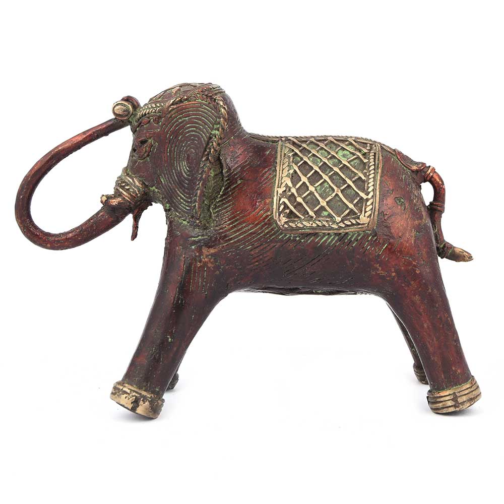 Here's a Mini Sculpture That will Trample Its Way Into Your Home. Handcrafted From Dhokra Brass, Which Uses the “Lost Wax” Method of Casting and Delicate Brass Thread, Its Intricate Design Delights. Perfect for Elephant Lovers.