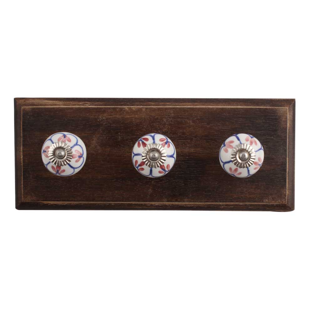 Red Season Ceramic Wooden Hook. A Perfect Complement to the Soft Tone of the Wood are these White Traditional Hat & Coat Hook Made of Genuine Porcelain and Brass. It can be use to Hang Jewellery, Leashes, Towels, Scarves, Light Weight Sweaters, Caps Etc.