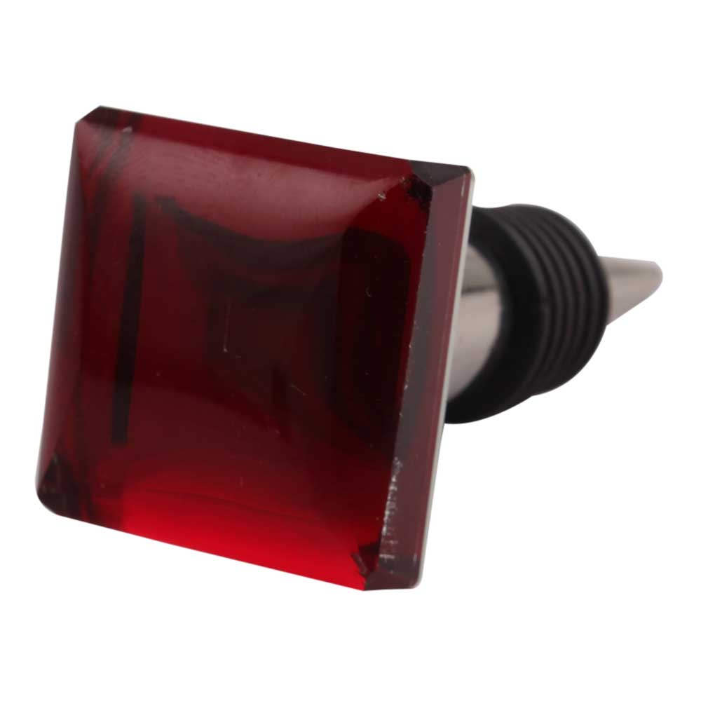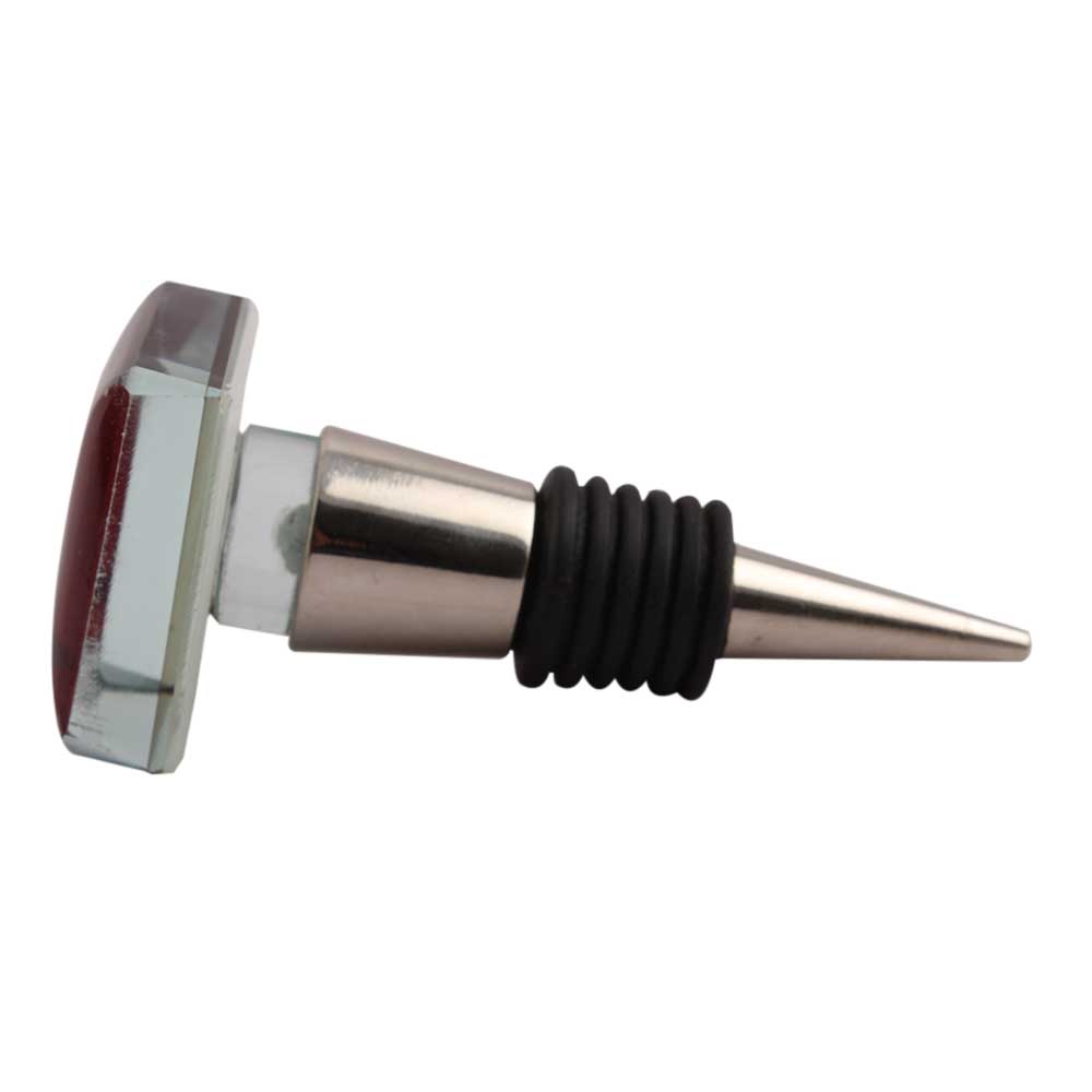 Red Square Flat Glass Wine Stopper.zinc alloy wine bottle stopper with attractive Jute Bag Packaging.