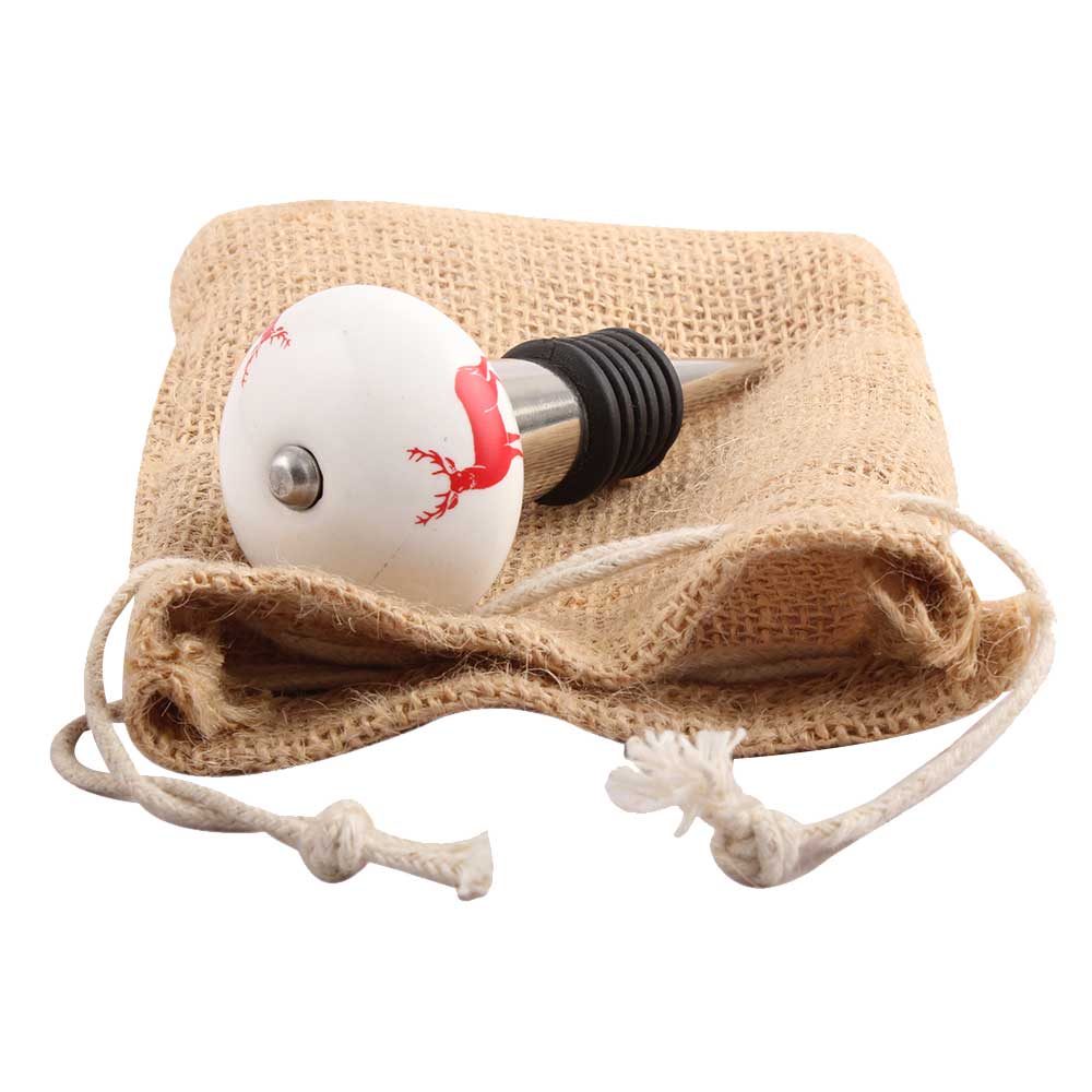 Red Standing Rein Deer Pattern Ceramic Wine Stopper.zinc alloy wine bottle stopper.