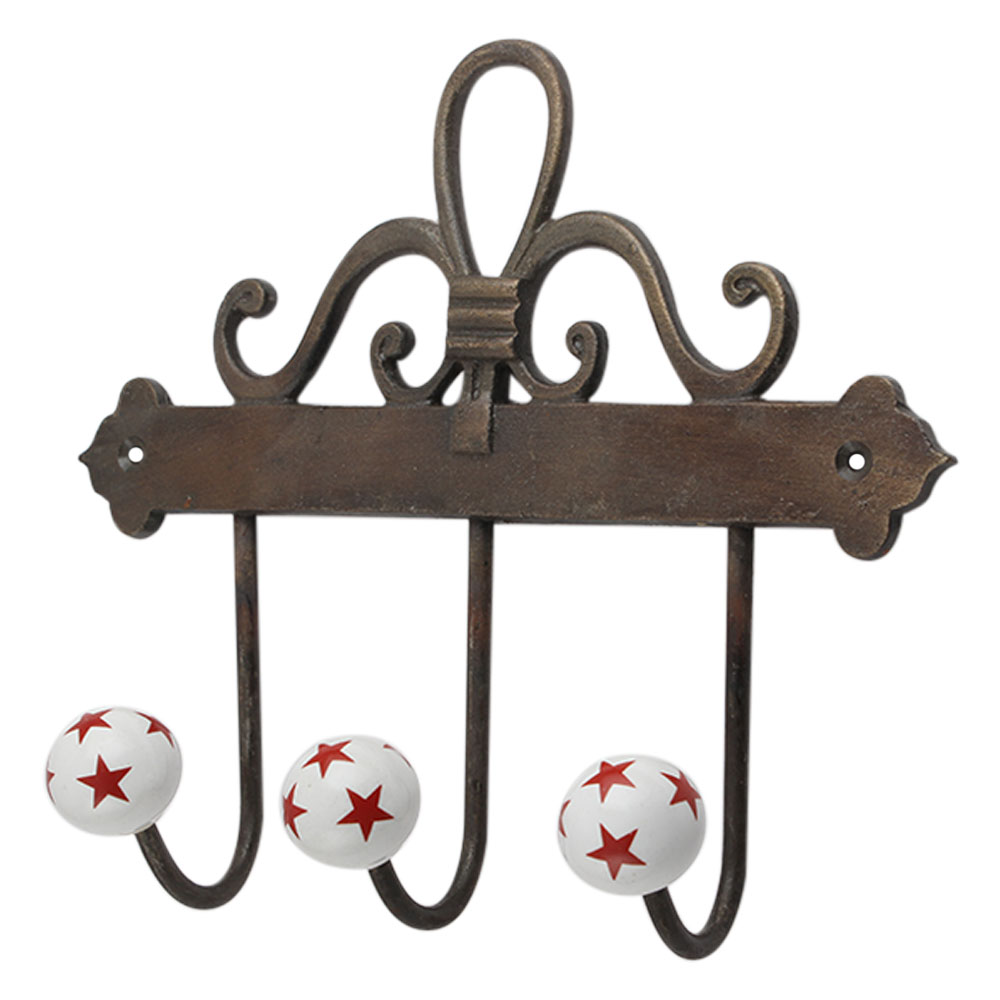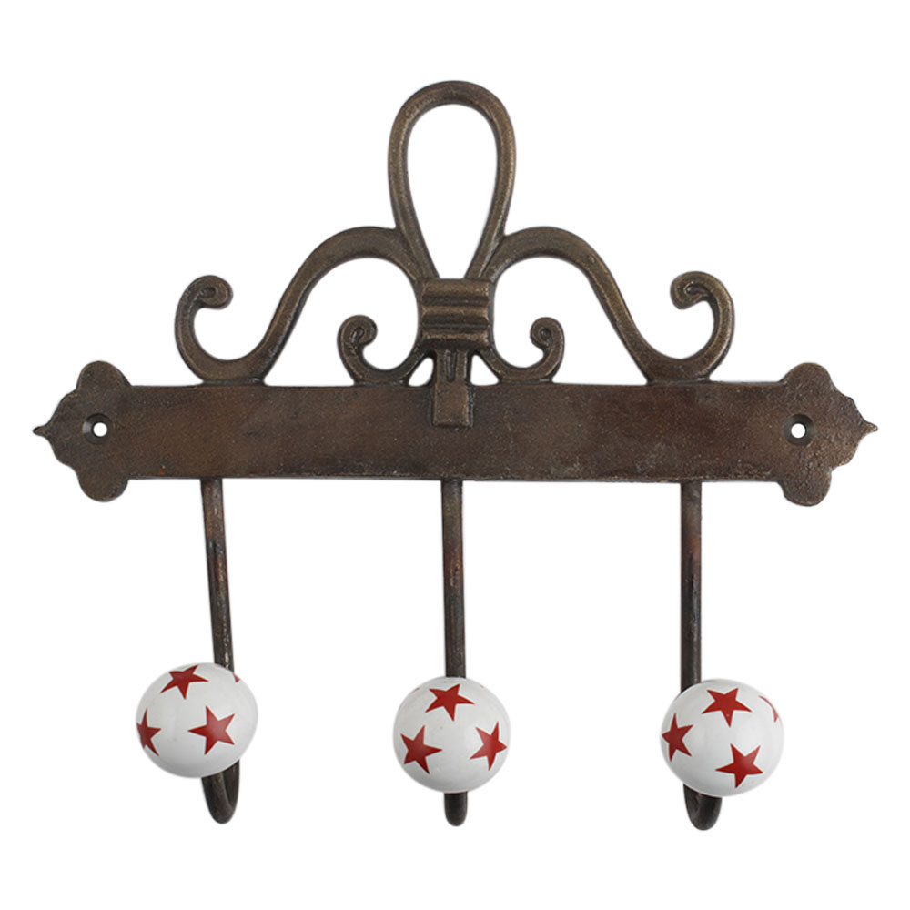 Red Star Ceramic Iron Hook. A Perfect Complement to the Soft Tone of the Wood are these White Traditional Hat Coat Hook Made of Genuine Porcelain and Brass. It can be use to Hang Jewellery, Leashes, Towels, Scarves, Light Weight Sweaters, Caps Etc.