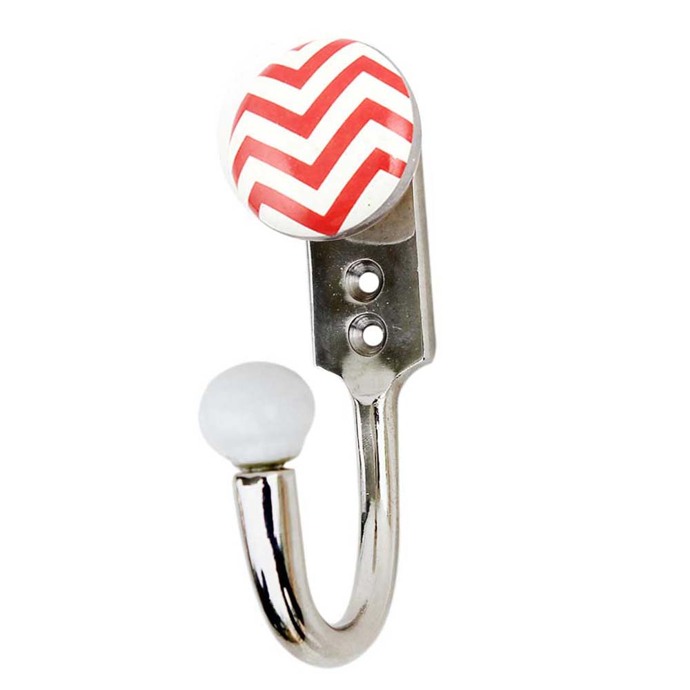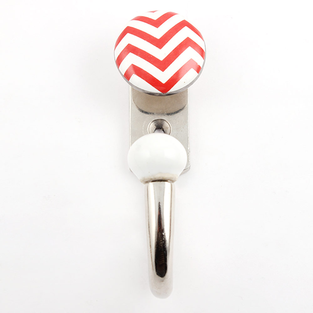 Red Striped Ceramic Hook. When Put on Wall or Cabinet It is An Art in Itself. This Hook is Strong Enough to Hold Your Keys, Tea Cups, Hand Towels, Cloths Etc.