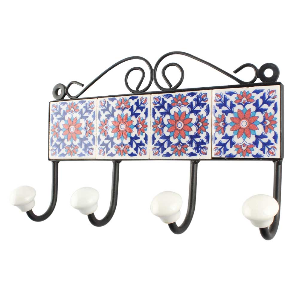 Red Sunflower Ceramic Tile Hook Online. When Put on Wall or Cabinet It is An Art in Itself. The Metal Part of this Hook is Black Powder Coated.
