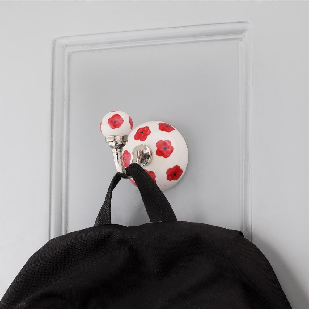 Red Tiny Flower Hooks . When Put on Wall or Cabinet It is An Art in Itself. This Hook is Strong Enough to Hold Your Cloths, Keys, Tea Cups, Coffee Mugs, Hand Towels Etc.