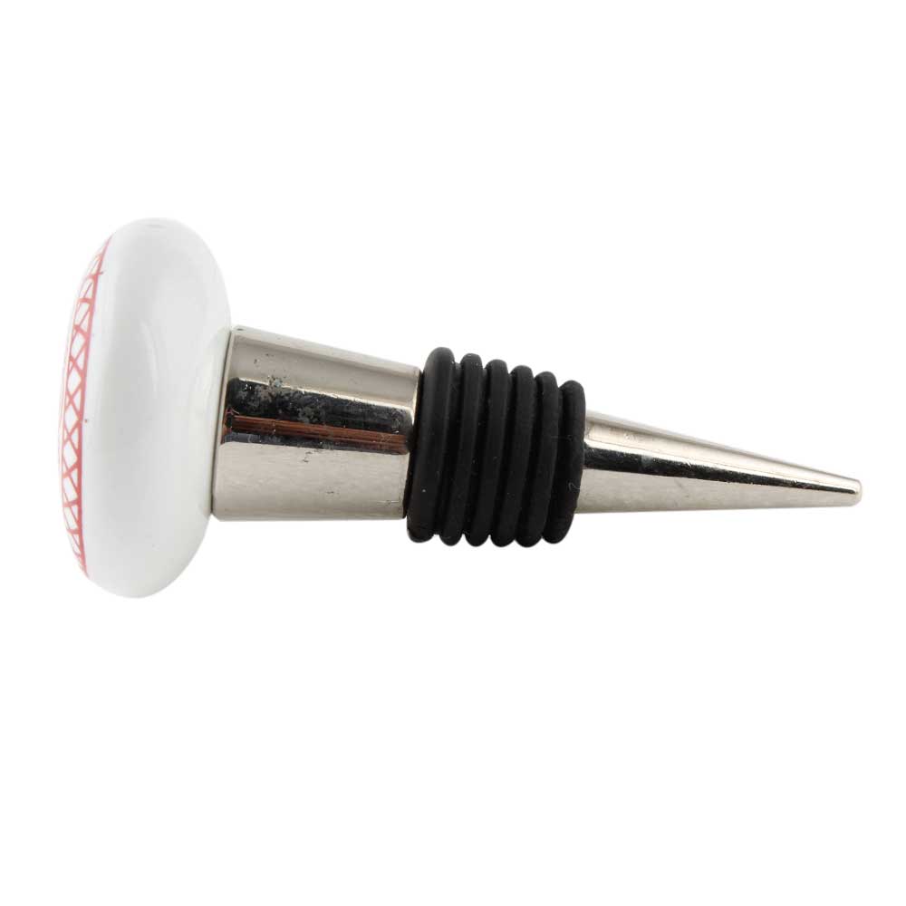 Red Wheel Flat Ceramic Wine Bottle Stopper. Zinc Alloy Wine Bottle Stopper with Attractive Jute Bag Packaging.