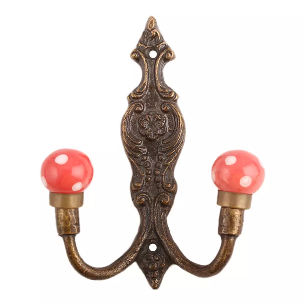 Red White Dot Ceramic Iron Hook. When Put on Wall or Cabinet It Gives A Sturdy Look. This Hook is Strong Enough to Hold Your Cloths, Keys, Tea Cups, Coffee Mugs, Hand Towels Etc