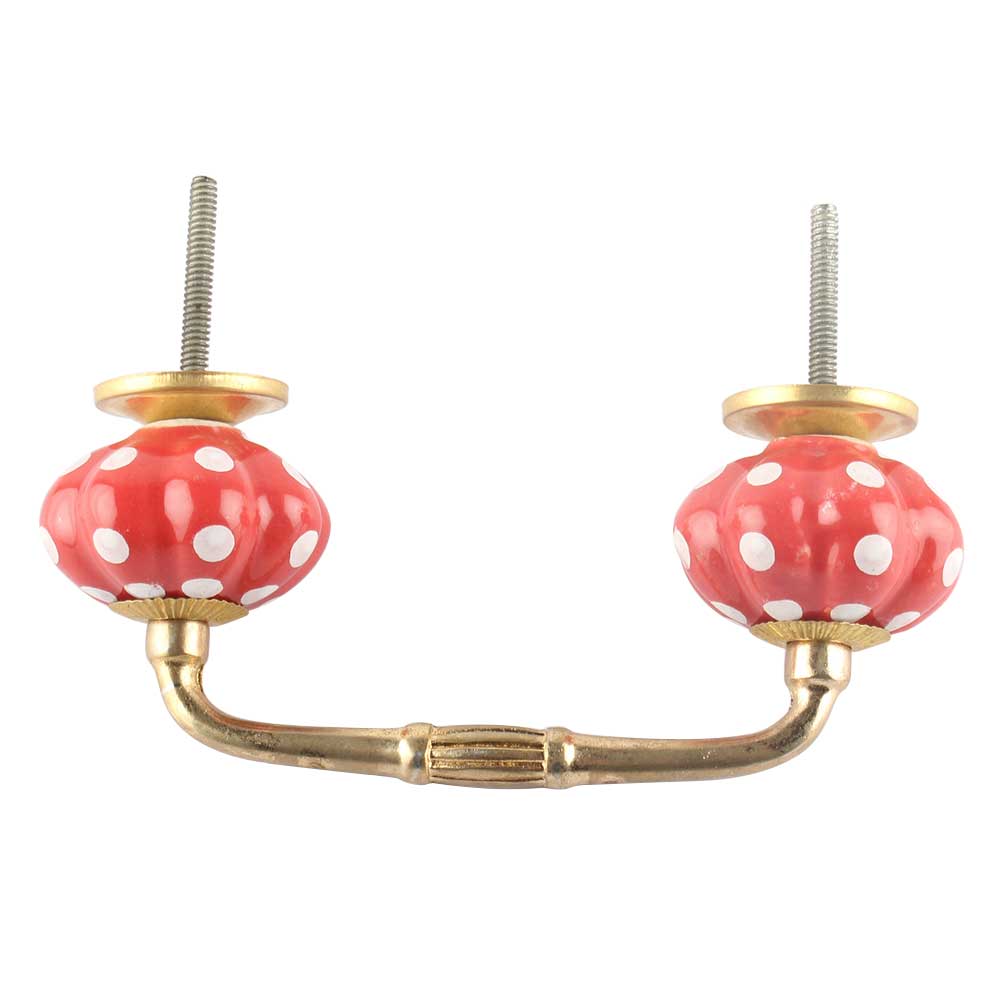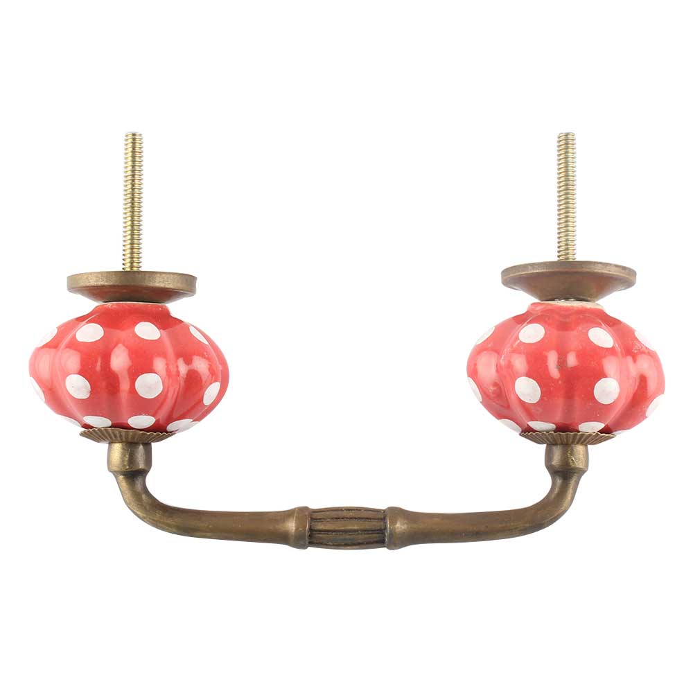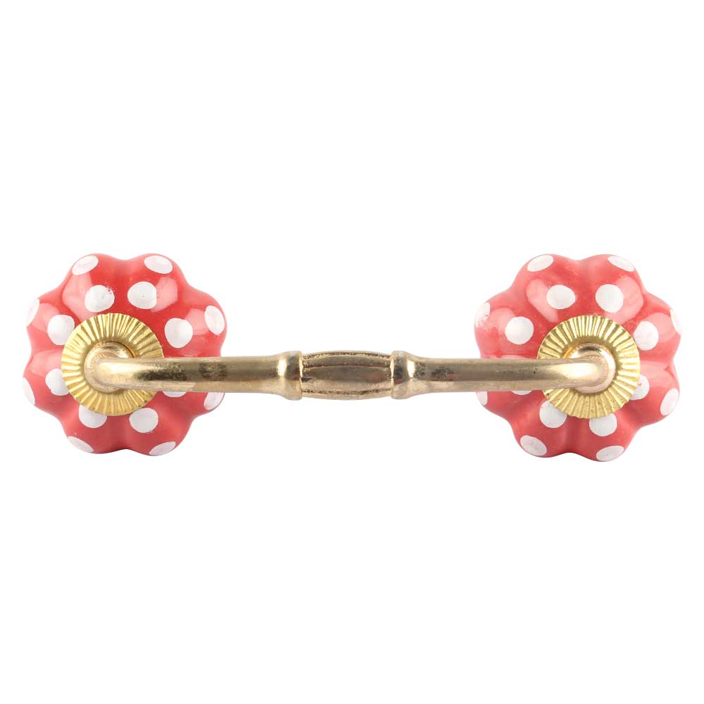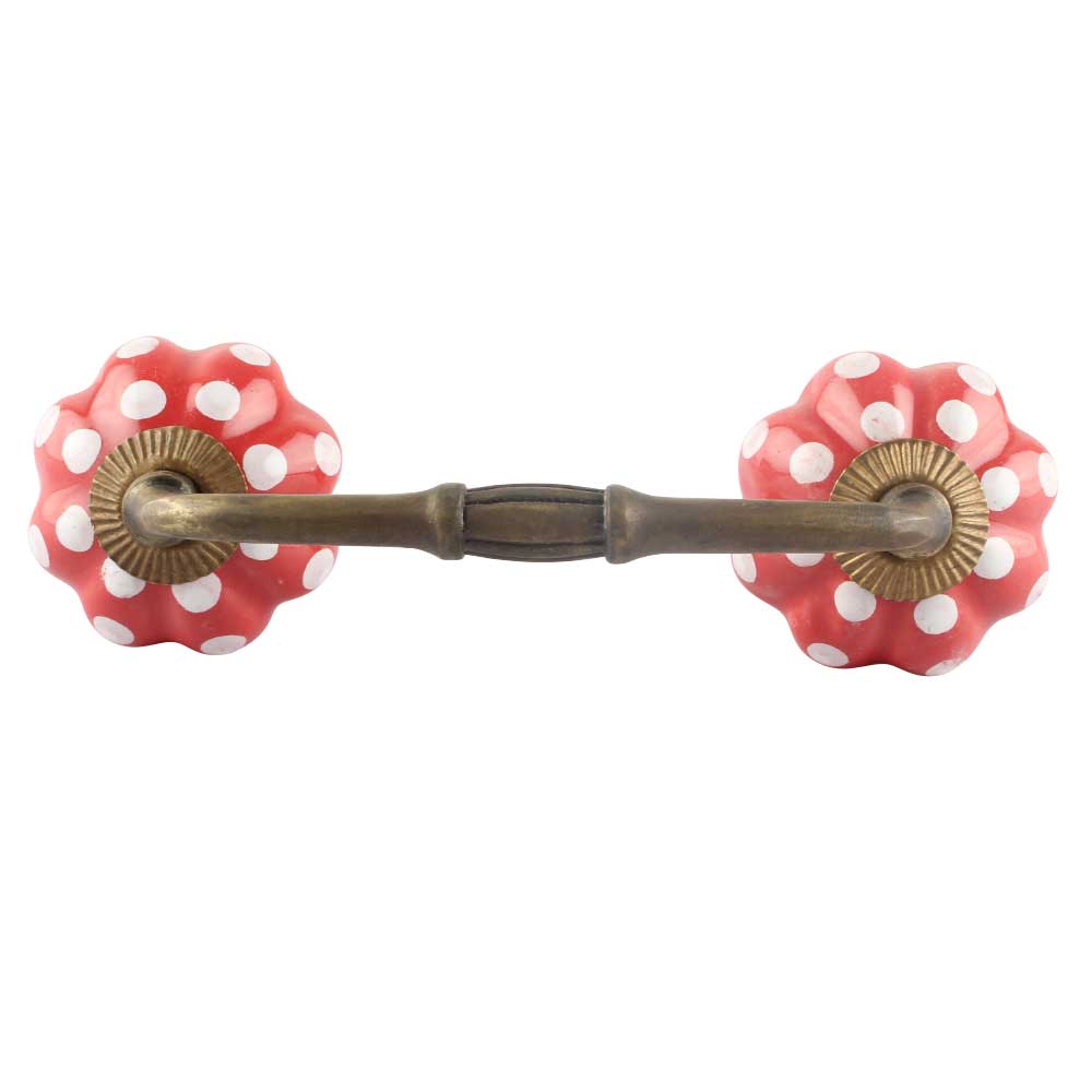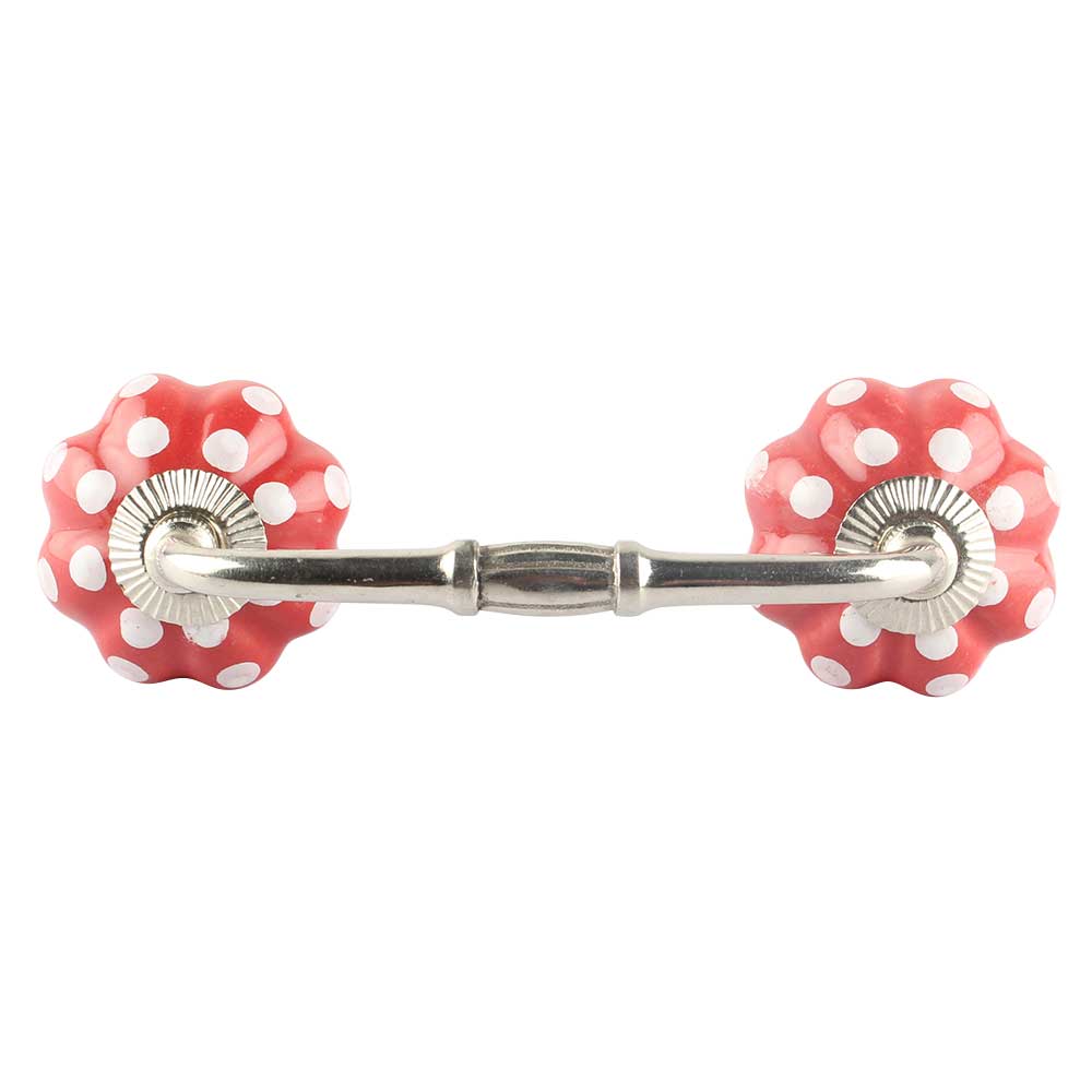Red White Floral Dot Ceramic Bridge Handles. Ideal for Drawer, Dresser, Cabinet, Wardrobe, Cupboard and Almirah etc.