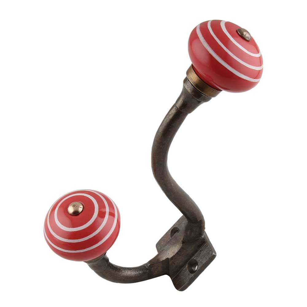 The Red White Stripes Ceramic Antique Iron Hook adds bold personality to your walls while keeping things tidy. Designed with a hand-painted ceramic knob in classic red and white stripes, this wall hook combines vintage charm with a playful twist. The sturdy antique-finished iron base offers reliable function, making it a perfect accent for entryways, bathrooms, kitchens, or bedrooms. It’s a small detail that brings both form and function to your home.