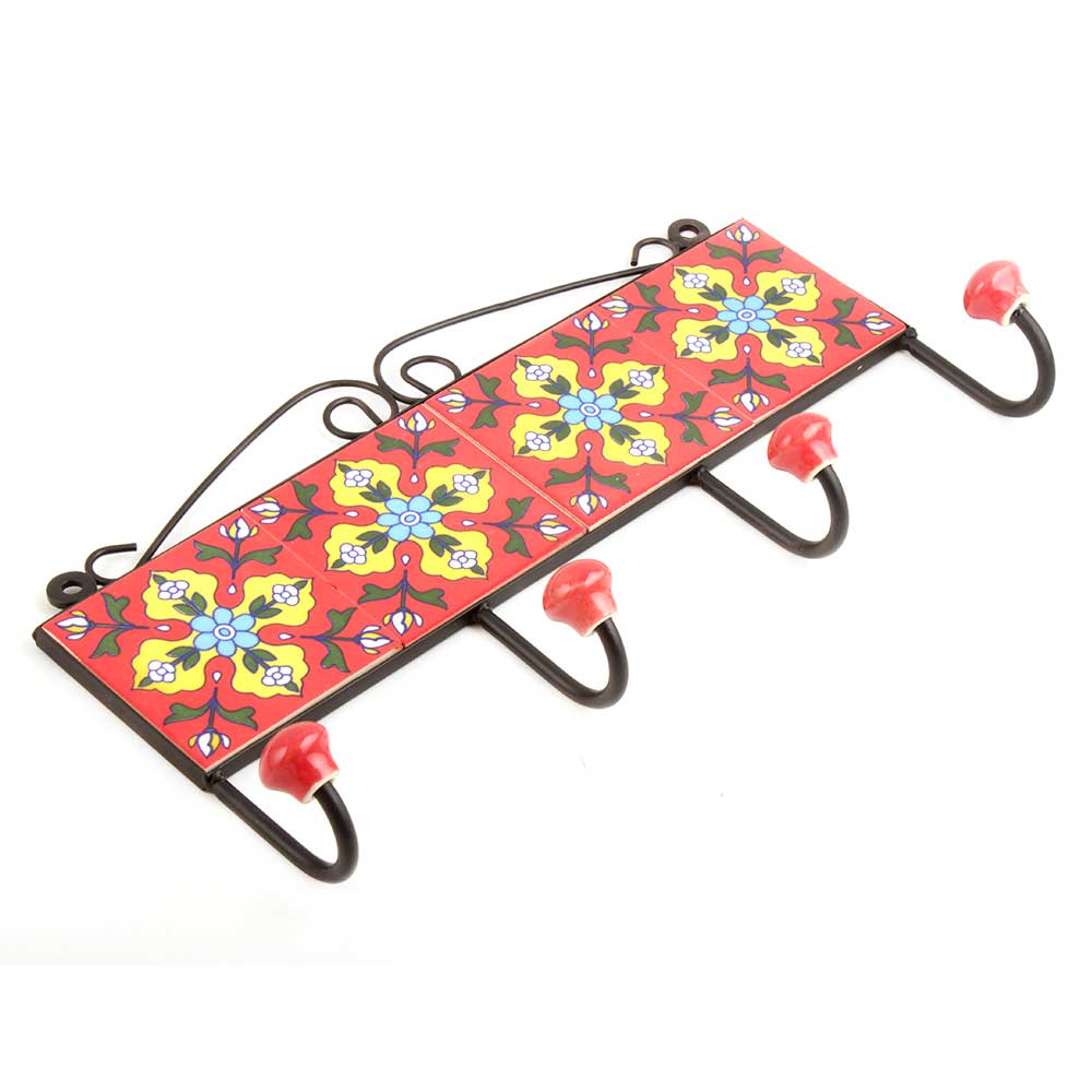 Red Yellow Leaf Tiles Hooks .When put on wall or cabinet it is an art in itself. The metal part of this hook is black powder coated.