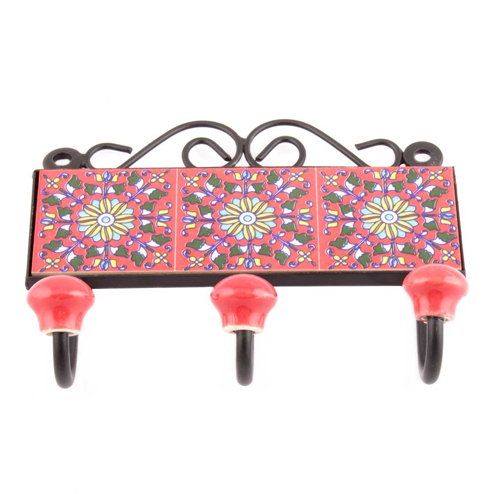 Red Yellow Sunflower Tiles Hooks. When Put on Wall or Cabinet it is an Art in itself. The Metal Part of this Hook is Black Powder Coated.