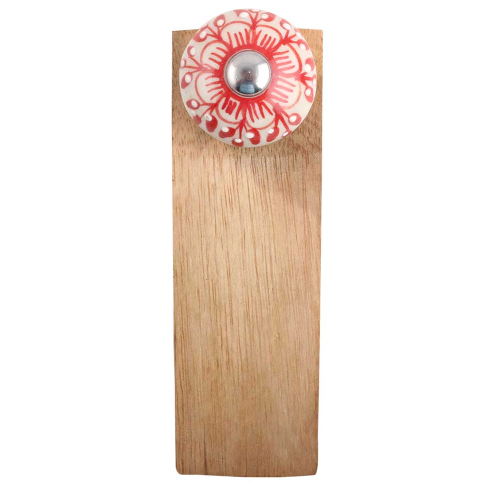 Handmade Ceramic and Wooden Door Stopper.Wooden Door Stopper with a Ceramic Knob to Carry it Easily. This Wooden Door Stopper has Glue Dots under it to Ensure that it does not Slip. It is Handmade by the Craftsmen of India and this Innovative Door Stopper won't Disappoint You.