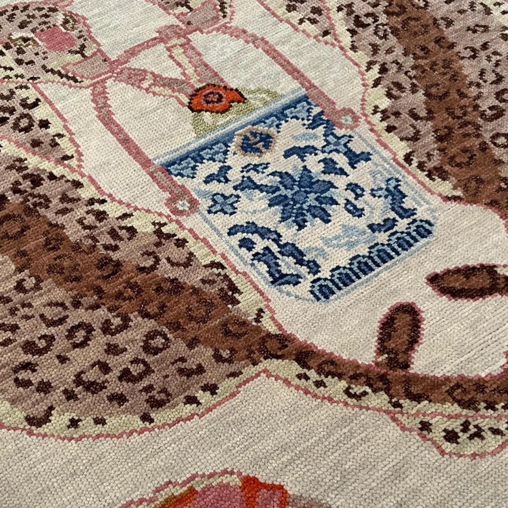 Bring warmth, calm, and sophistication into your home with this hand-knotted Oushak rug, crafted using time-honored techniques and the finest natural wool. This rug showcases a refined central medallion surrounded by graceful floral and botanical motifs, framed by an intricate border all rendered in soft tones of cream, beige, dusty blue, and faded gold. Perfectly balanced between minimalist and ornamental, this piece adds a touch of vintage elegance without overwhelming your space. Its light color palette is ideal for luxury bedrooms, Scandinavian living rooms, or airy apartments and villas. Available Sizes: 4x6 ft 5x8 ft 6x9 ft 8x10 ft 9x12 ft Custom sizes available on request Product Details: Construction: 100% Hand-Knotted Material: High-quality Wool Color Palette: Cream, Light Beige, Pale Blue, Muted Gold Design: Traditional Oushak Floral Medallion Pile Height: Medium Made In: India Processing Time: 46 weeks (Made to order) Why Choose This Rug: Timeless Oushak design with a modern neutral twist Ideal for high-end interiors and peaceful settings Soft underfoot and naturally insulating Hand-knotted by skilled artisans for heirloom durability One-of-a-kind no two rugs are the same This.