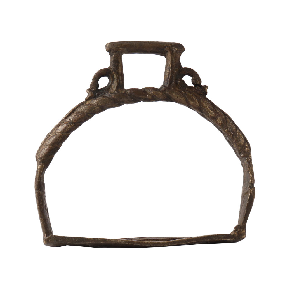 The semi-circular loop that the foot is placed in, as opposed to the leather strap that suspends it, displays an ancient brass rope pattern. original handcrafted horse paddle footrest made of brass. Superb piece for a collection, home decor, or present.