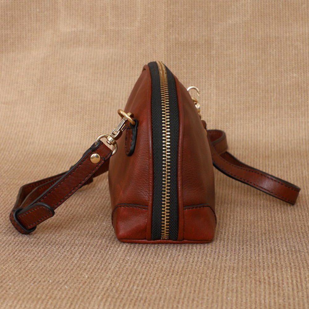 This leather develops character over time; clean with a soft cloth and apply leather cream periodically. Avoid moisture and store in the provided dustbag.