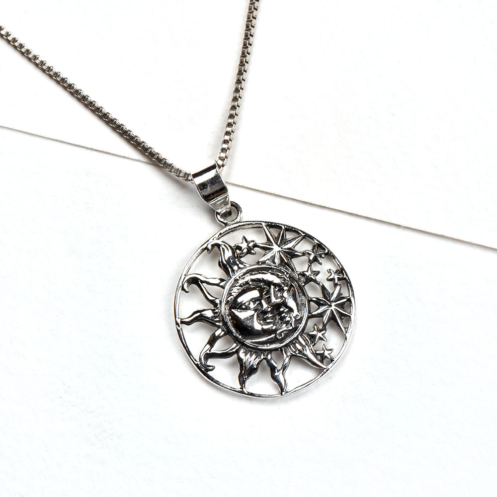 Add a personnel touch by gifting this celestial round 92.5 Sterling Silver Pendant with the face of crescent moon sun and lot of stars on the occasion of weddings, anniversaries, valentines ,birthday, thanks giving birthday, or on the graduation day