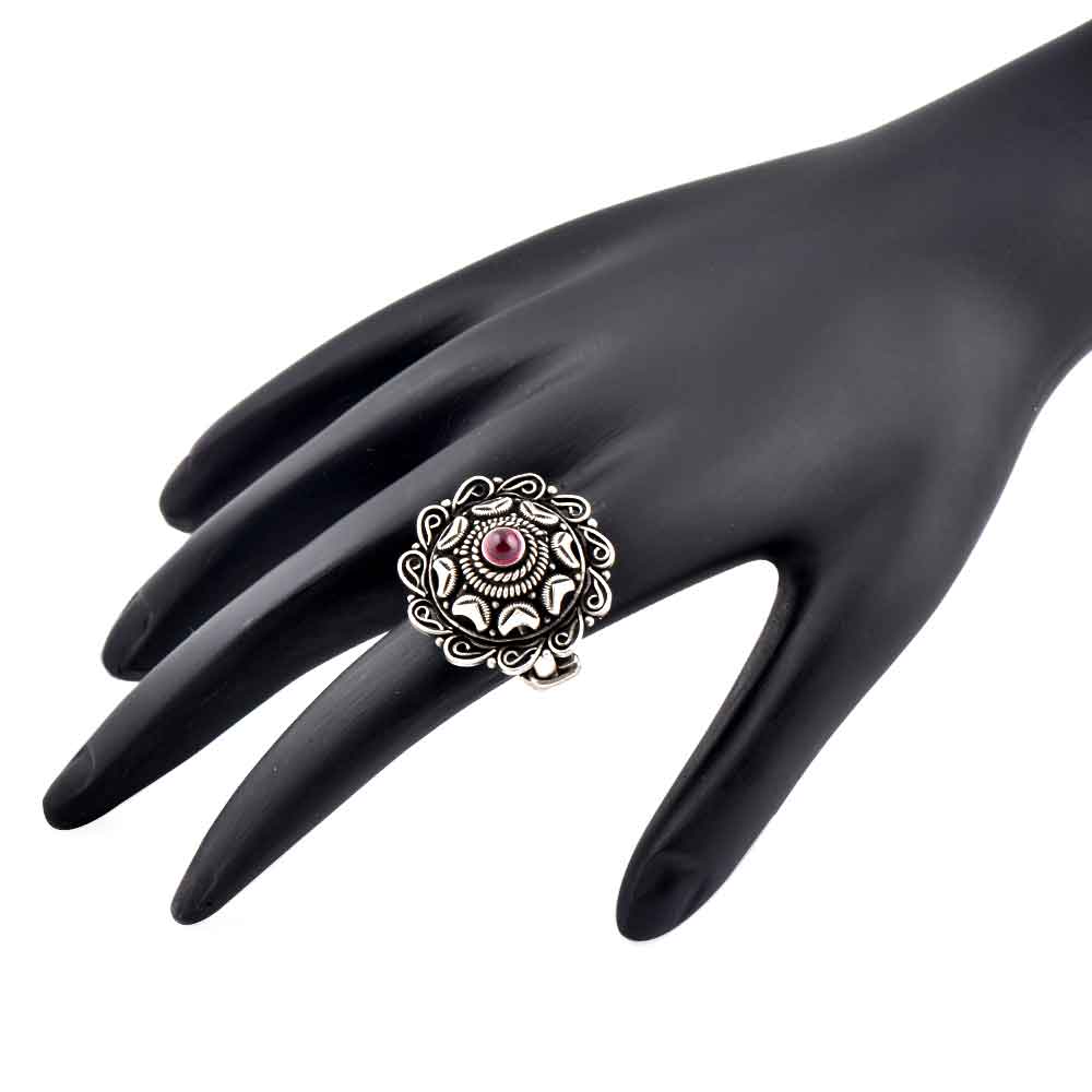 A very intricate Sterling Silver ring with a single amethyst stone with embossed petals and scroll floral design is the perfect gift for your sister ,mother, friend , niece , teenaged daughter to bring a big smile on their face.