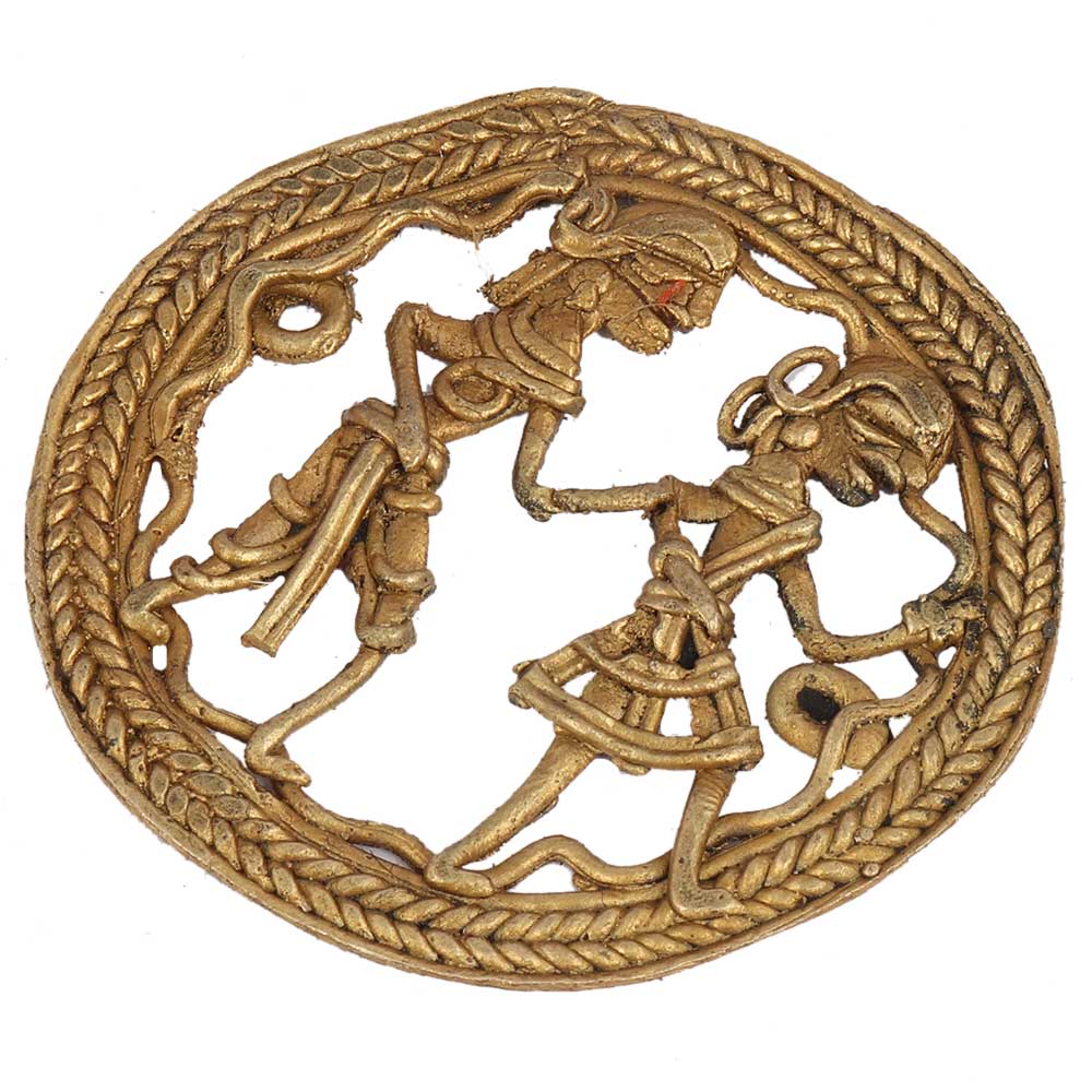 Round Border Brass Wall Art Of Village Couple Daily Activity enhances the decor value of your our house, office, hotel, etc.Great for gifting during weddings, anniversaries, house warming ceremonies, new venture, award ceremonies etc.