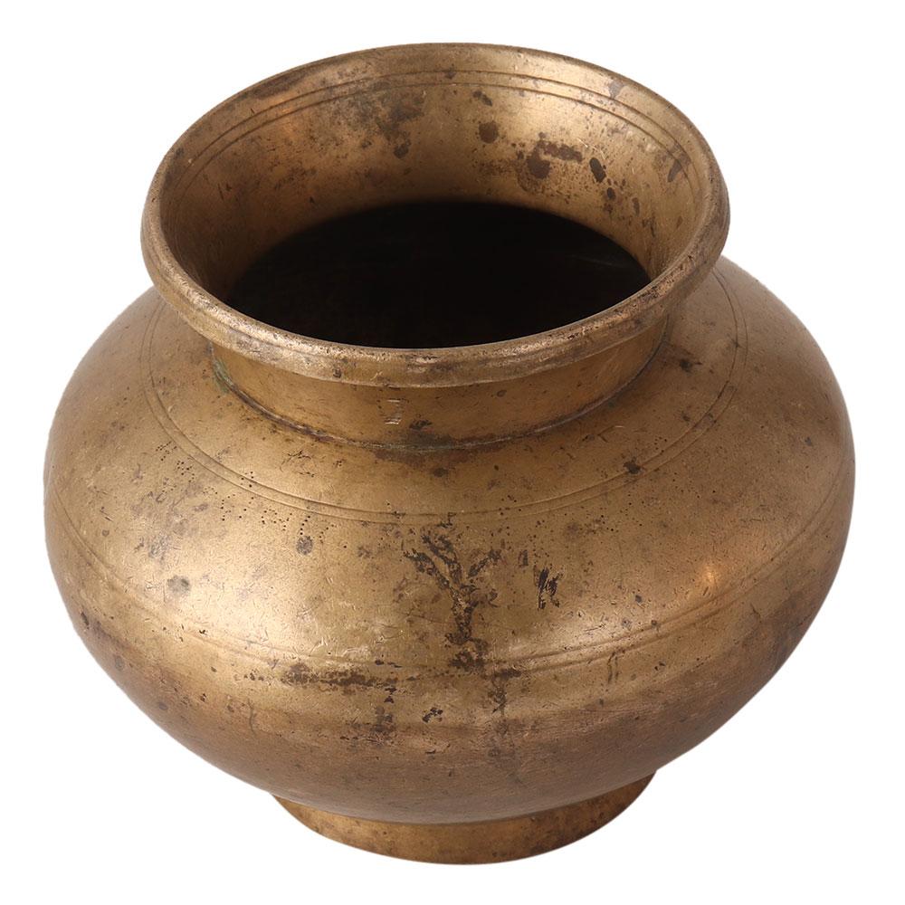 Round-shaped brass pot made by expert craftsman of India. It can be used in hindu ceremonies to store water.