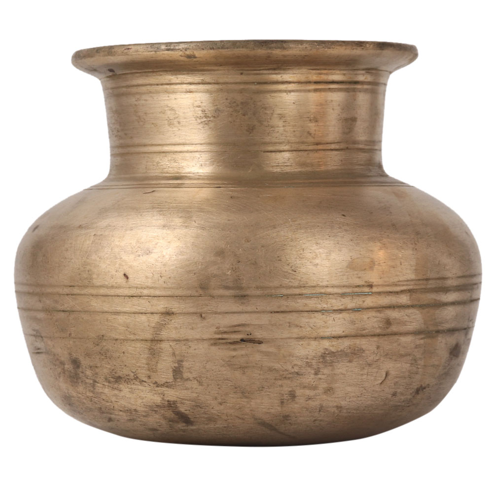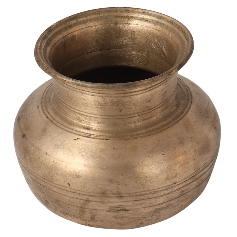 This charming vintage style Kalash or pot is made of white metal alloy. It has a brownish appearance and a round shape. It has a long neck with circular rings carved on it. It is believed that positive energy is stored in the earth, which passes into the white metal alloy and then into the water stored in the pot. Beautify your home or office.