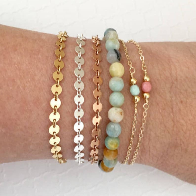 This Round Disc Dainty Bracelet combines minimalist elegance with handcrafted detail, making it a timeless everyday accessory. Featuring a smooth, polished round disc charm on a fine brass chain, the bracelet is beautifully finished with a warm 18K gold plating. At 6.5 inches, it offers a refined, comfortable fit—perfect for women who love subtle yet sophisticated jewelry.