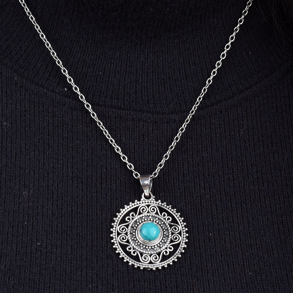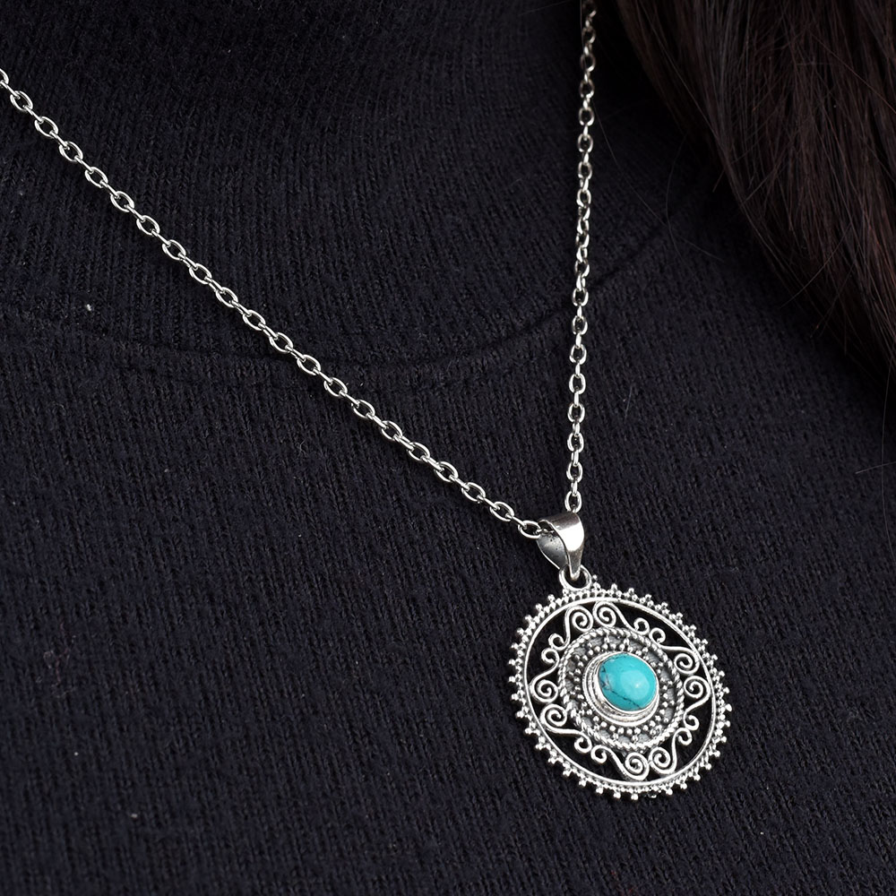 Round Engraved Blue Stone Sterling Silver Pendant is suitable for a wedding , anniversary birthday party etc. It is also the perfect gift for your family and friends on the occasion Diwali, Christmas or new year party. It can also be worn to a small family gathering.