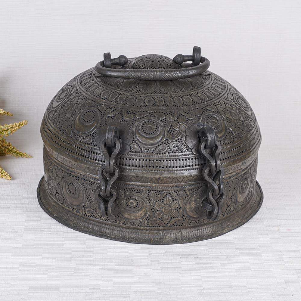 Handcrafted by skilled Indian artisans, this exquisite brass round jewelry box is a true masterpiece. Adorned with intricate engravings, its black finish lends it an alluring charm that captivates the beholder. The box features a convenient handle on the top, allowing for effortless transportation and practical usage for storing jewelry and precious stones. Its versatility extends beyond function, as it can also enhance the decor of your home or office with its antique allure. Designed with meticulous attention to detail, this best jewelry box is further embellished with a secure latch, ensuring the safety of your cherished valuables. Its timeless beauty and craftsmanship make it a perfect candidate for display in museums or exhibitions, attracting discerning customers seeking elegance and refinement. Additionally, this brass jewelry box serves as an ideal gift for loved ones during special or festive occasions, embodying the essence of sophistication and grace. Discover the epitome of style and utility with this captivating jewelry box designed specifically for girls.