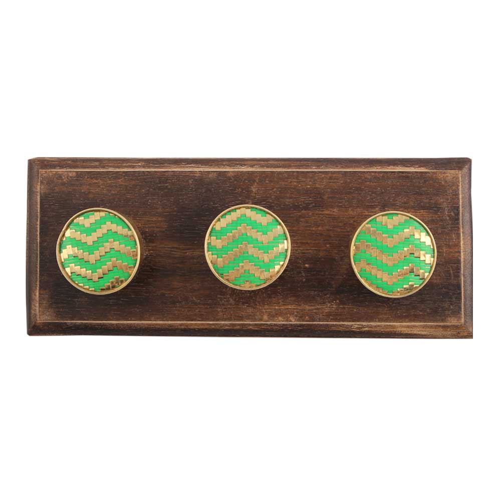 Round Green Metal and Wooden Hook. A Perfect Complement to the Soft Tone of the Wood are these White Traditional Hat Coat Hook Made of Genuine Porcelain and Brass. It can be use to Hang Jewellery, Leashes, Towels, Scarves, Light Weight Sweaters, Caps Etc.