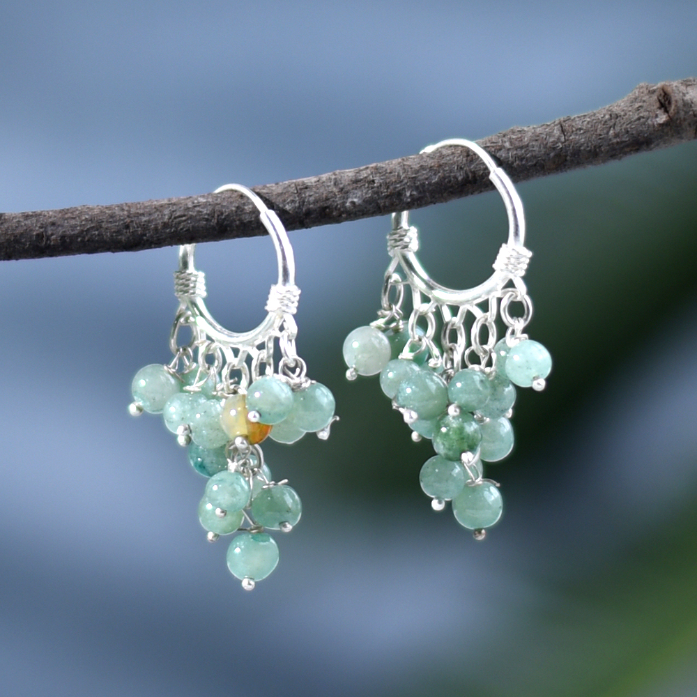 Round green onyx beaded hoop earrings in 92.5 sterling silver are a beautiful and elegant accessory that combines the natural beauty of green onyx with the durability and shine of sterling silver. Green onyx is a variety of chalcedony, known for its unique green color, which can range from pale to dark green. The earrings feature round green onyx beads that are hand strung on 92.5 sterling silver hoops. The hoop design creates a timeless look that can be worn with any style, whether it's casual or formal. Sterling silver is a durable and long-lasting metal that is easy to care for and maintain. These earrings are perfect for those looking to add a touch of natural beauty and elegance to their jewelry collection. They make a great gift for any occasion.