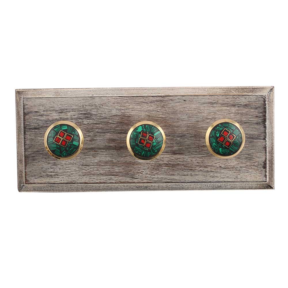 Round Green Stone and Metal Wooden Hook. A Perfect Complement to the Soft Tone of the Wood are these White Traditional Hat & Coat Hook Made of Genuine Porcelain and Brass. It can be use to Hang Jewellery, Leashes, Towels, Scarves, Light Weight Sweaters, Caps Etc.