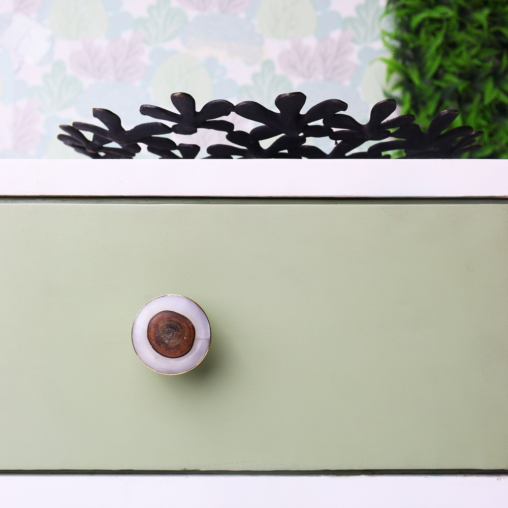 This rounded knob cabinet is a perfect combination of modern aesthetics, with natural charm. It can be defined as having a smooth grey resin surface with the warmth of wood accents, adding a unique touch to your furniture item. Perfect for kitchens and bathrooms, or anywhere a home needs a subtle but elegant update.