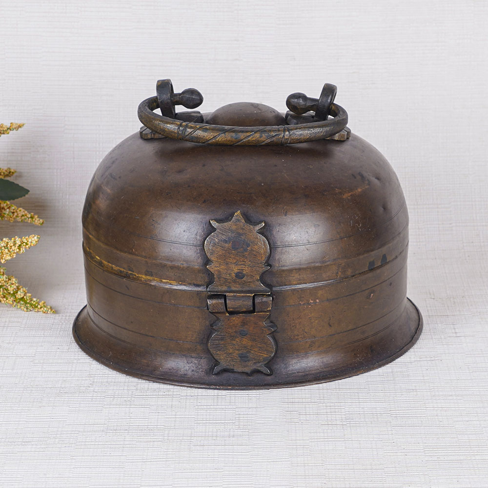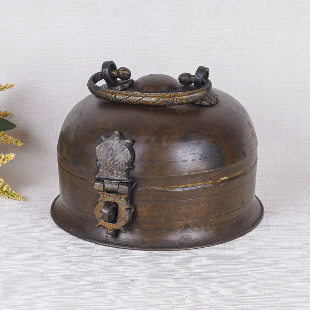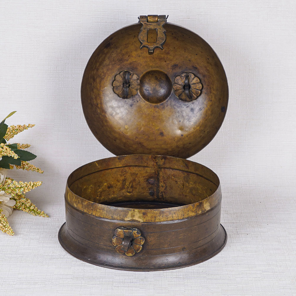 Introducing an exquisite brass round jewelry box, traditionally made by skilled Indian artisans with their hands. Crafted from high-quality brass with a rich, dark brown finish, this jewelry box combines timeless beauty with exceptional craftsmanship. Designed to safeguard precious items and jewelry, this versatile box is perfect for storing your cherished accessories or valuable gemstones. It’s plain yet elegant design exudes sophistication, making it a captivating decorative piece for any setting, be it your home, office, restaurant, or hotel. Featuring a secure latch and a convenient handle on the top, this jewelry box offers both protection and portability. Its refined appearance makes it an ideal addition to exhibitions or museums, showcasing its artistic and cultural significance. Furthermore, this splendid brass jewelry box serves as a remarkable gift for your loved ones on special or festive occasions. Whether it's a nice jewelry box, the best jewelry box, or specifically for earrings, this exceptional piece promises to enchant and delight the recipient.