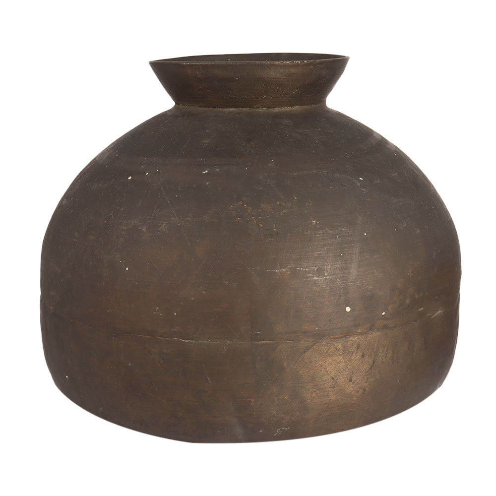 A round Indian matka water pot in elegant black finish. Buy this brass matka online from our website to get hassle-free delivery right to your doorstep. It has a large belly with a small opening, making it a perfect addition to your vintage-style restaurant or hotel. Use it as a planter for the entrance or patio to provide an aesthetically pleasing sight for your guests or visitors. It is handcrafted by professional artisans from India using high quality brass to create a remarkable indoor impression. A top choice for vintage art lovers to add to their collection. Gift it to your family, friends or relatives on a special or festive occasion.