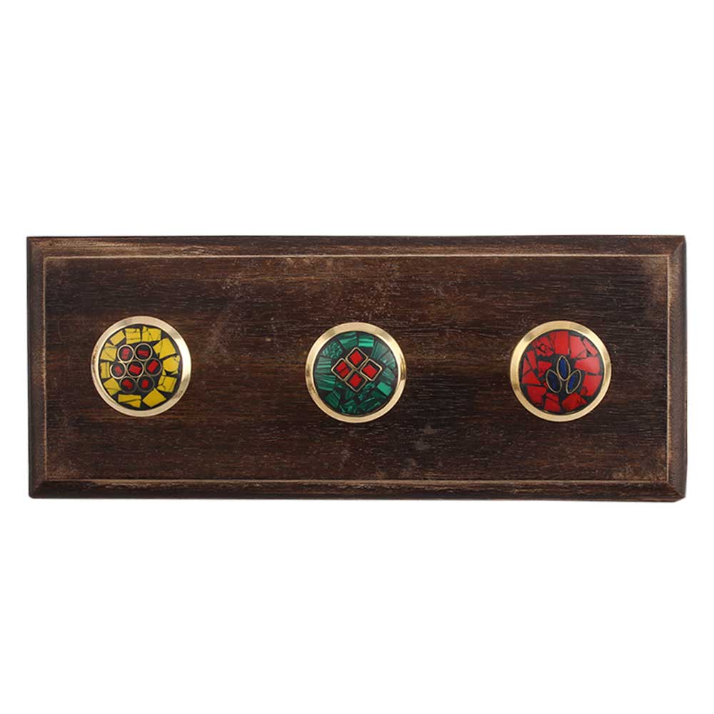 Round Mix Stone and Metal Wooden Hook. A Perfect Complement to the Soft Tone of the Wood are these White Traditional Hat Coat Hook Made of Genuine Porcelain and Brass. It can be use to Hang Jewellery, Leashes, Towels, Scarves, Light Weight Sweaters, Caps Etc.