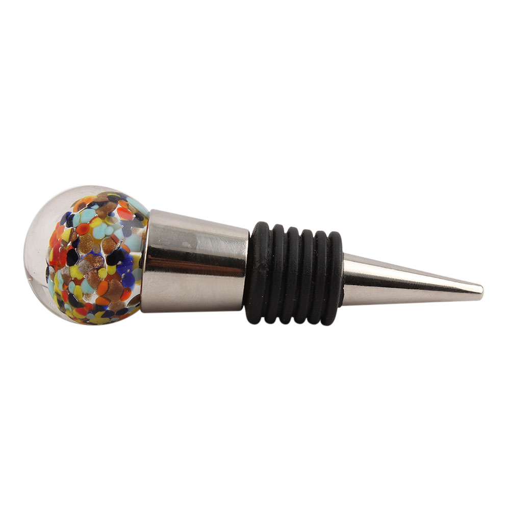 Round Mixed Glass Wine Stopper.zinc alloy wine bottle stopper with attractive Jute Bag Packaging.