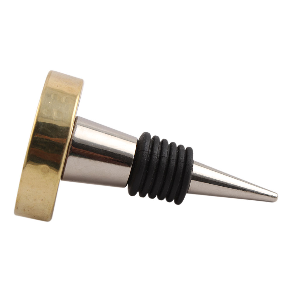Round Navy Blue Metal And Wooden Wine Stopper.zinc alloy wine bottle stopper with attractive Jute Bag Packaging.