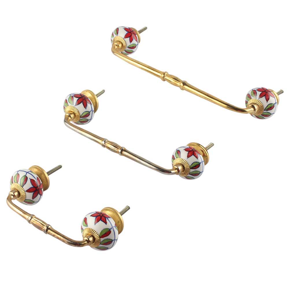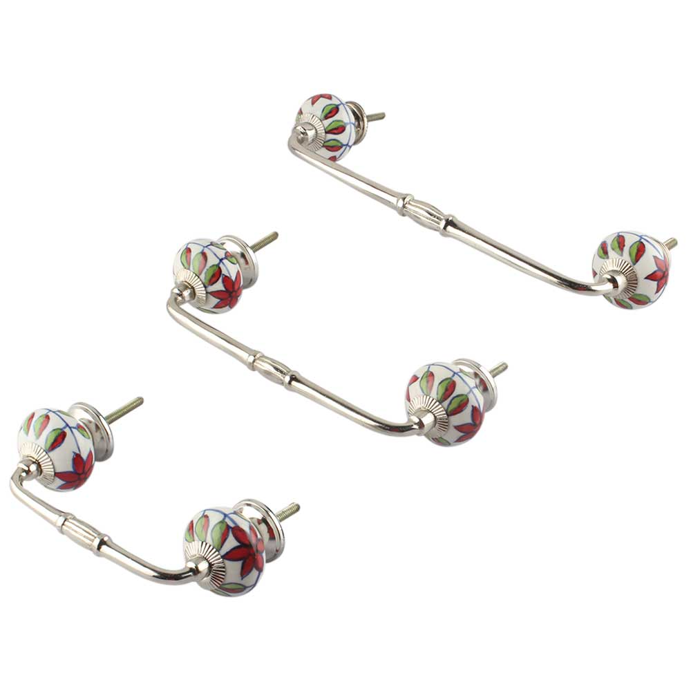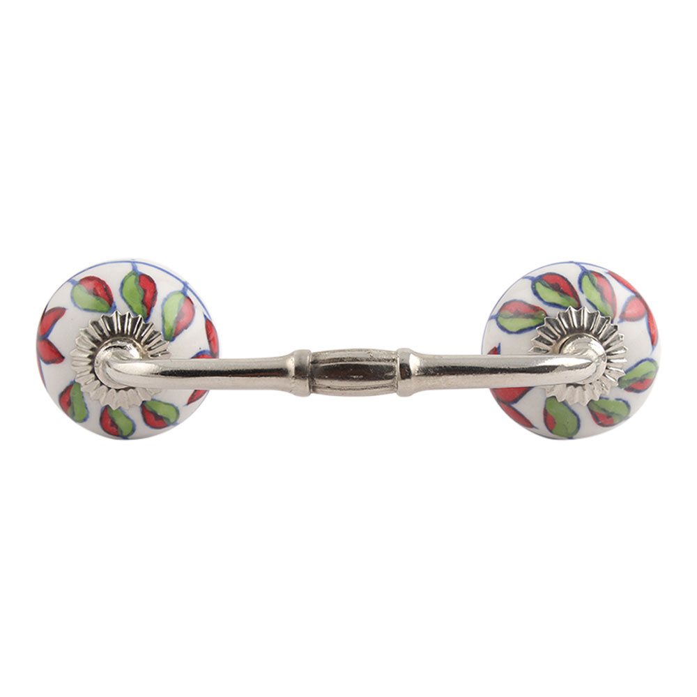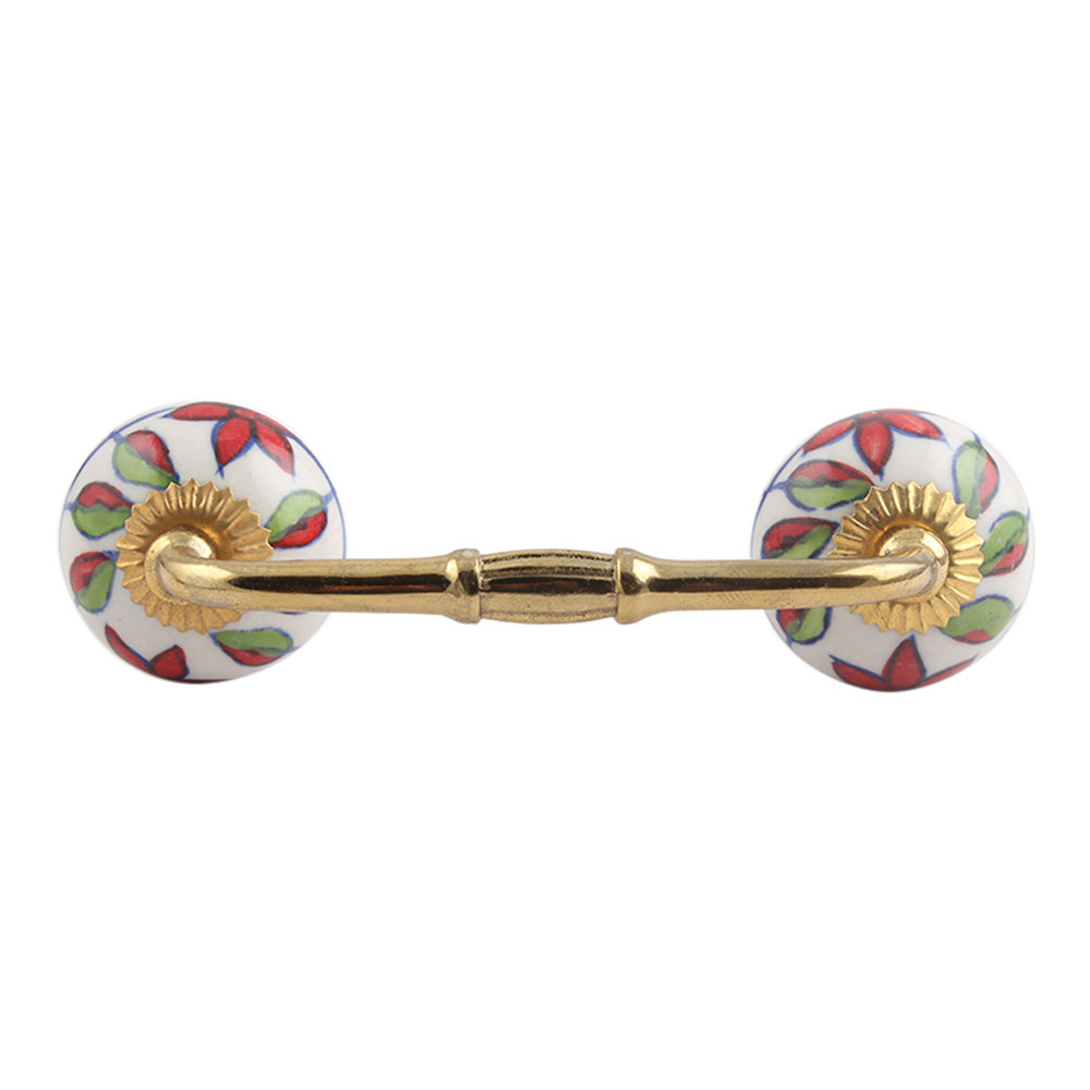Round Plumeria Mystical Ceramic Bridge Handle. Ideal for Drawer, Dresser, Cabinet, Wardrobe, Cupboard and Almirah.