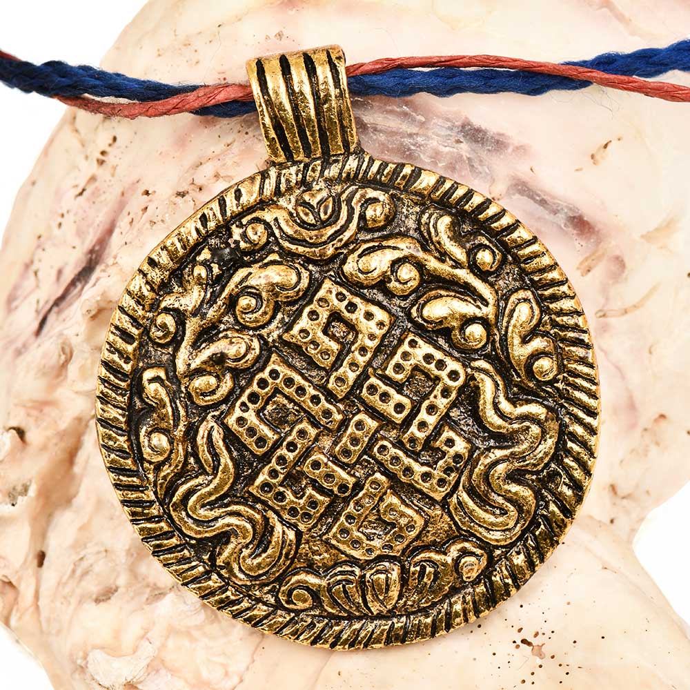 Adorn yourself with the radiant beauty of traditional artistry through this Round Tribal Embossed Floral Pendant Necklace, handcrafted from lustrous golden aluminum. The embossed floral motif at the center symbolizes growth and vitality, while the circular shape represents unity and balance. With its warm golden tone and intricate detailing, this pendant brings together the spirit of tribal craftsmanship and the sophistication of timeless jewelry design.