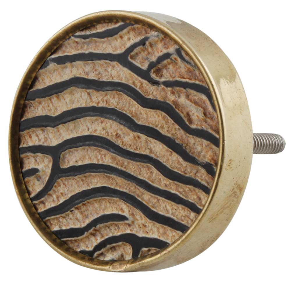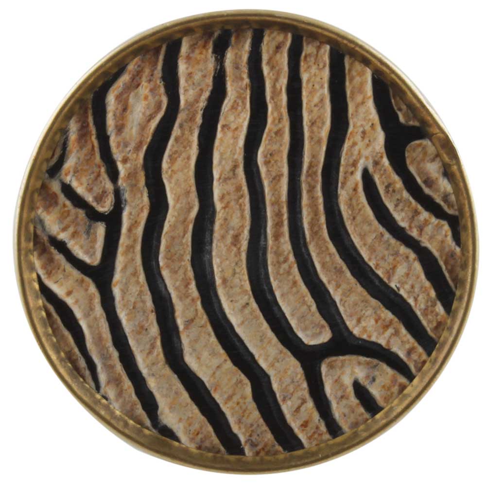 Enhance your furniture with a touch of exotic charm using these Round Zebra Print Horn Brass Drawer Knobs. Showcasing a distinctive zebra print on natural horn, complemented by a sturdy brass base, these knobs merge nature-inspired beauty with practical functionality. Ideal for drawers, cabinets, or doors, they offer a striking update to any space.