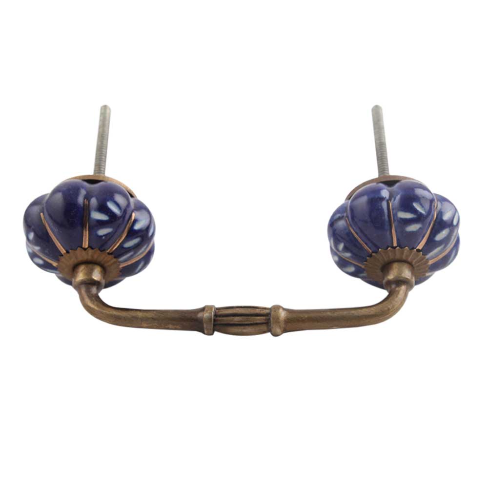 Royal Blue Engraved Ceramic Bridge Handle. Ideal for Drawer, Dresser, Cabinet, Wardrobe, Cupboard and Almirah.
