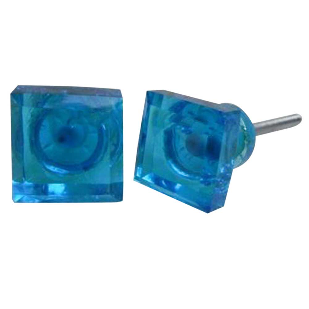 Royal Blue Small Square Glass Knobs, Small. Ideal for Drawer, Dresser, Cabinet, Wardrobe, Cupboard and almirah