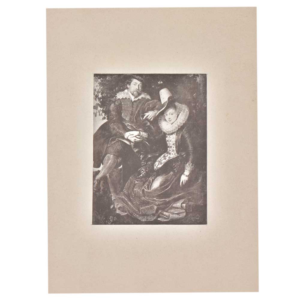 An image of a royal couple from the famous novel Grand Pintros where the husband is seated on a raised platform and his lady is sitting just besides him. Both have worn expensive clothes and hats that is a symbol of royalty . The lady rests her hand on her husbands hand which shows that they are very much in love . A perfect gifting option for friends and relatives.