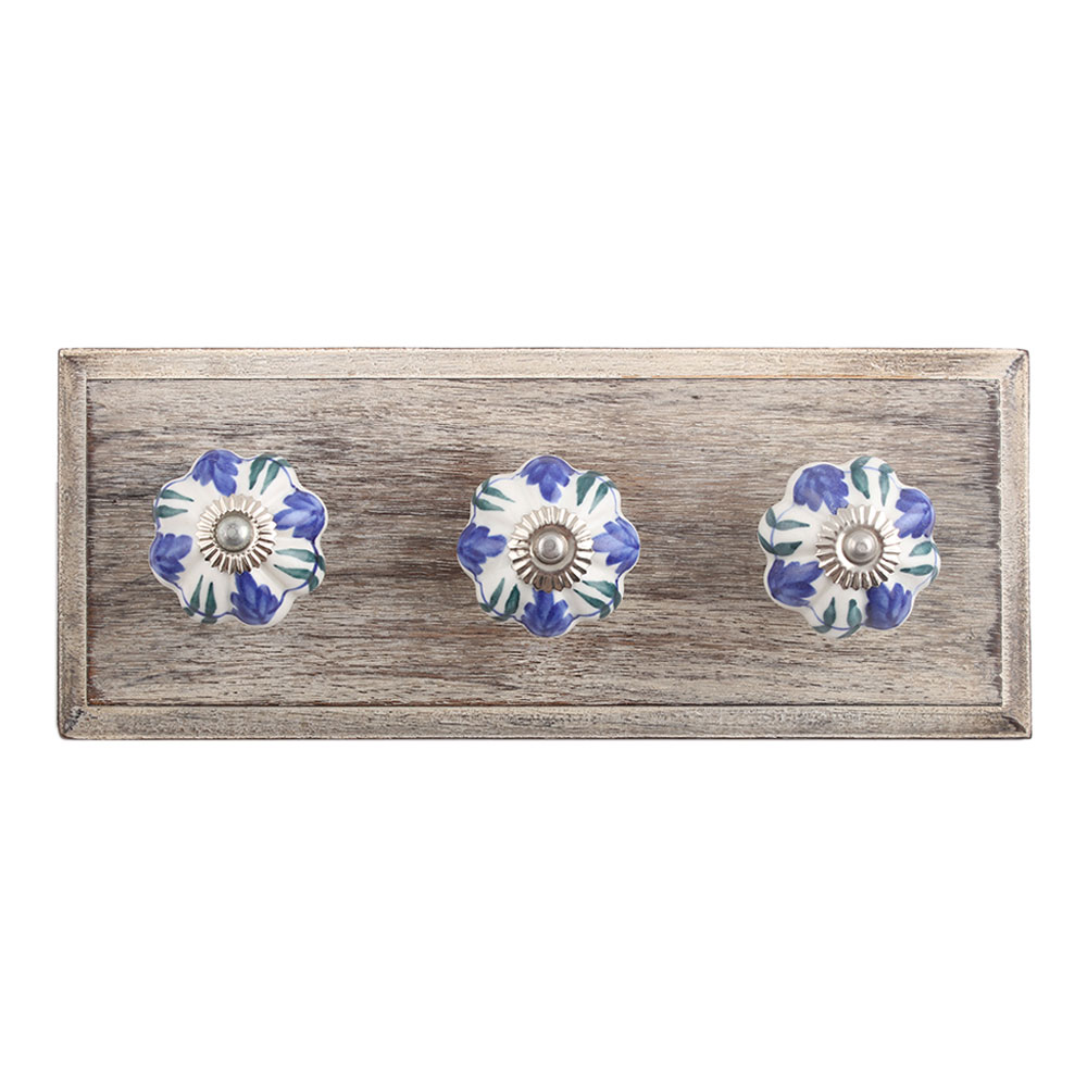 Royal Floral Ceramic Wooden Hook. A Perfect Complement to the Soft Tone of the Wood are these White Traditional Hat Coat Hook Made of Genuine Porcelain and Brass. It can be use to Hang Jewellery, Leashes, Towels, Scarves, Light Weight Sweaters, Caps Etc.