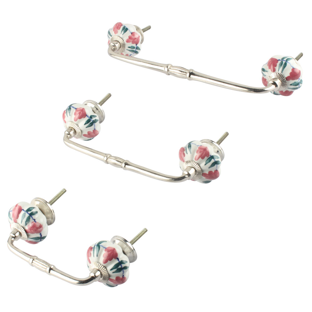 Royal Pink Ceramic Bridge Handle. Ideal for Drawer, Dresser, Cabinet, Wardrobe, Cupboard and Almirah.