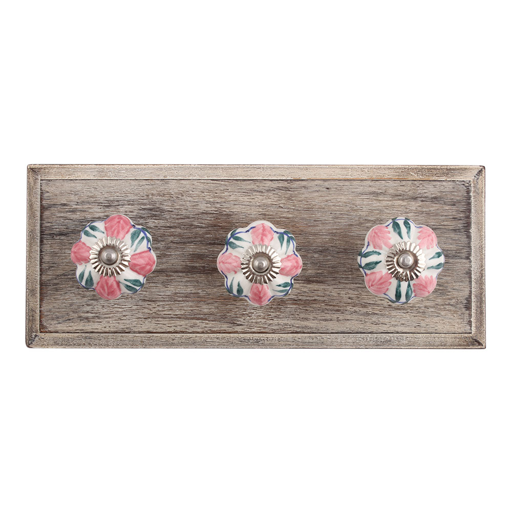 Royal Pink Ceramic Wooden Hook. A Perfect Complement to the Soft Tone of the Wood are these White Traditional Hat & Coat Hook Made of Genuine Porcelain and Brass. It can be use to Hang Jewellery, Leashes, Towels, Scarves, Light Weight Sweaters, Caps Etc.