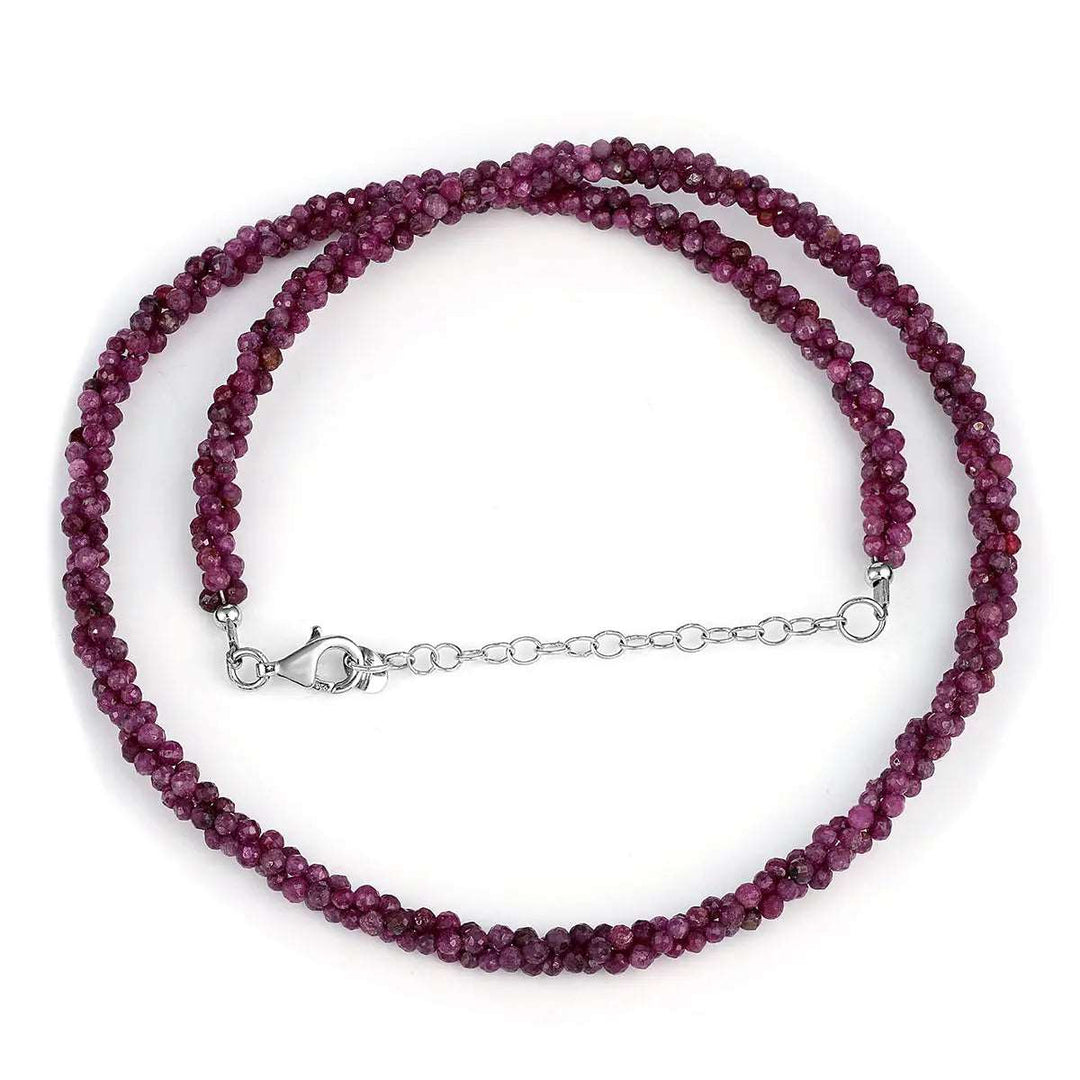 The necklace features ruby-tone gemstone beads selected for their rich color and smooth polish.