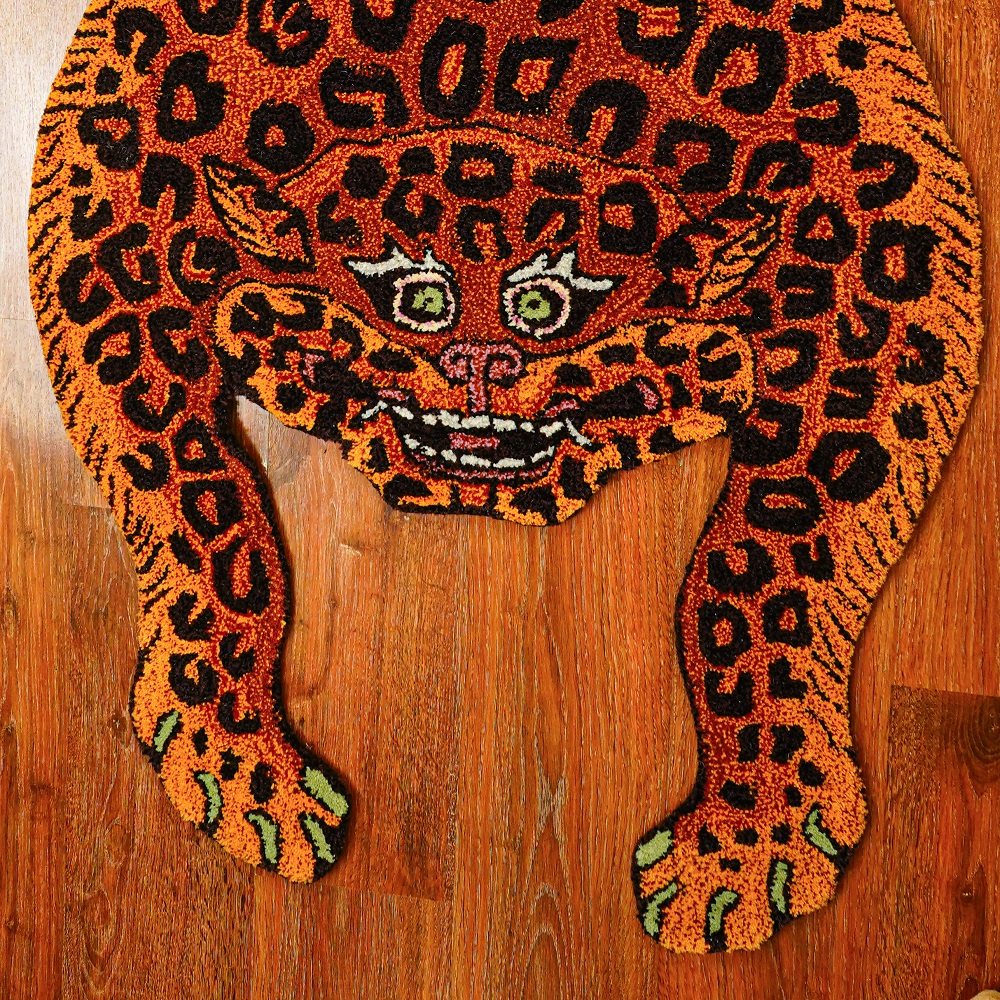 A fun rug in the shape of an animal is called Rug Leopard . This warm, plush, and hand-tufted rug is thick. The ideal carpet for a child's room. This hand-tufted rug in the contemporary style was skillfully created with premium wool by master rug craftsmen. This rug has a cotton backing and was woven in India using only wool. Place this sophisticated carpet in your living room and bedroom, and prepare to receive many praises from your visitors.