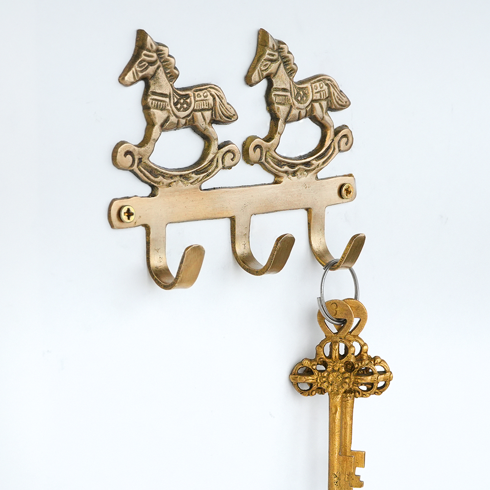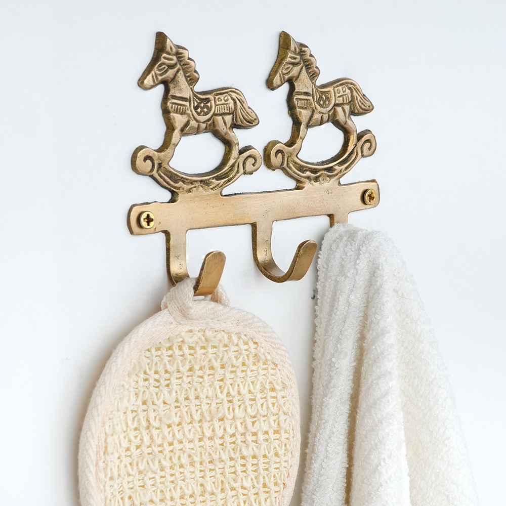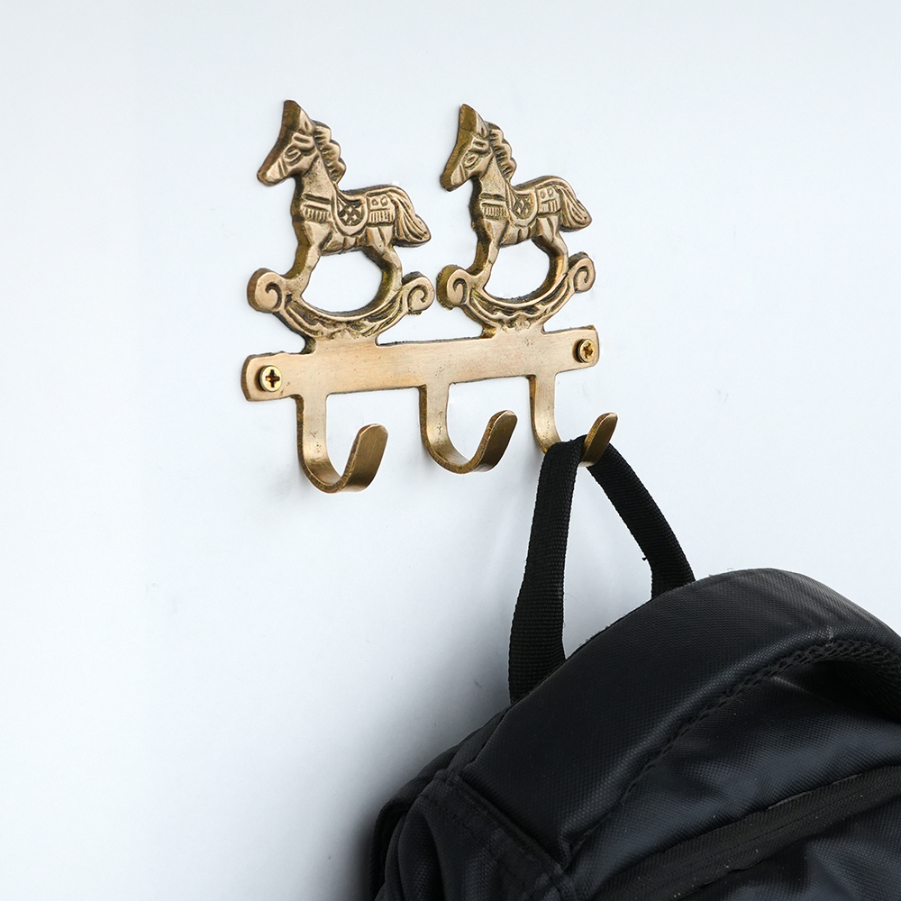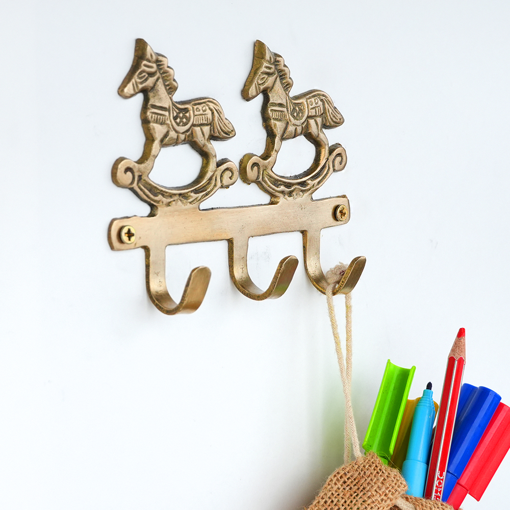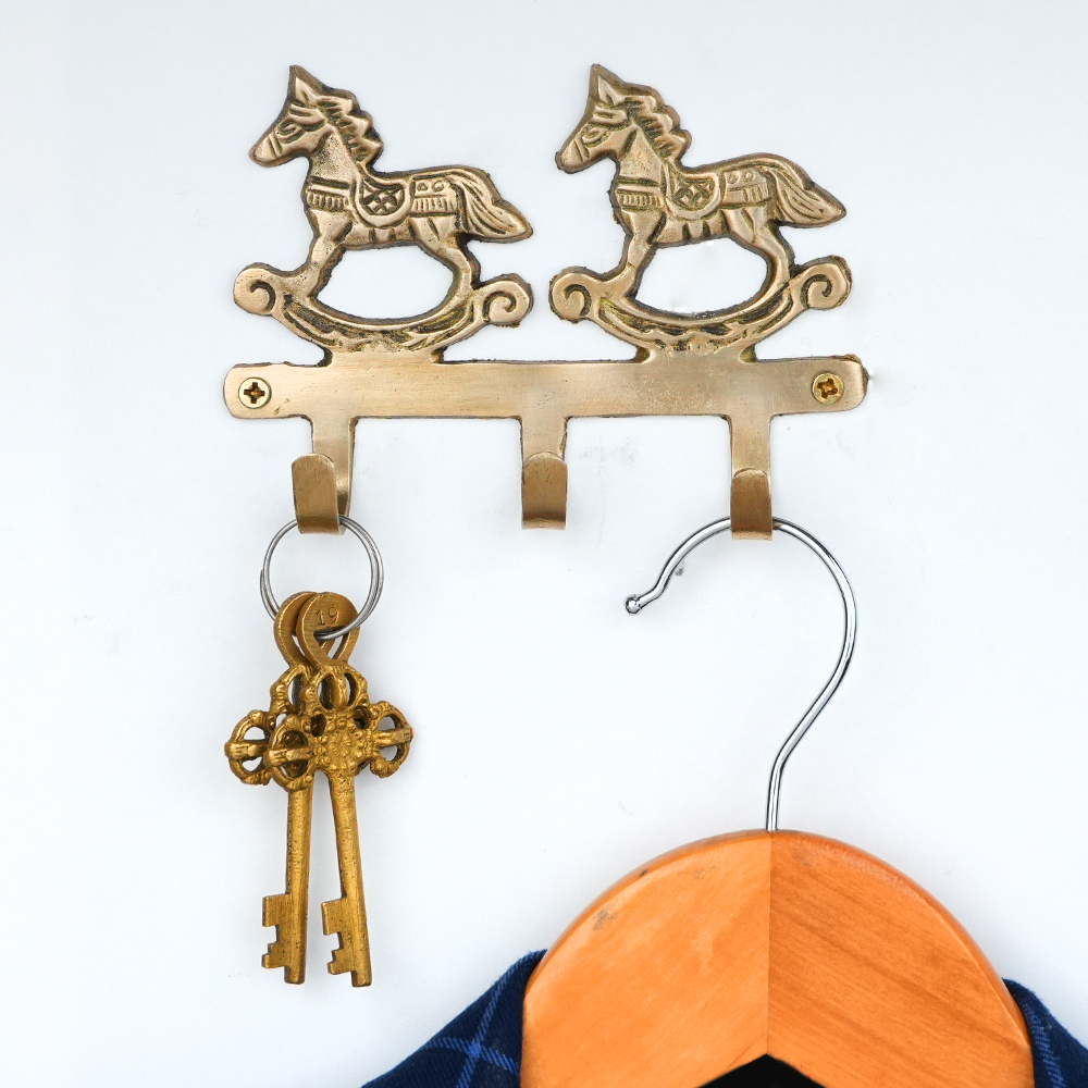 Handmade Golden Brass Two Running Horse Wall Hooks. This Hook is Strong Enough to Hold Your Cloths, Keys, Tea Cups, Coffee Mugs, Hand Towels Etc.