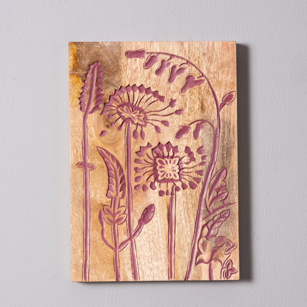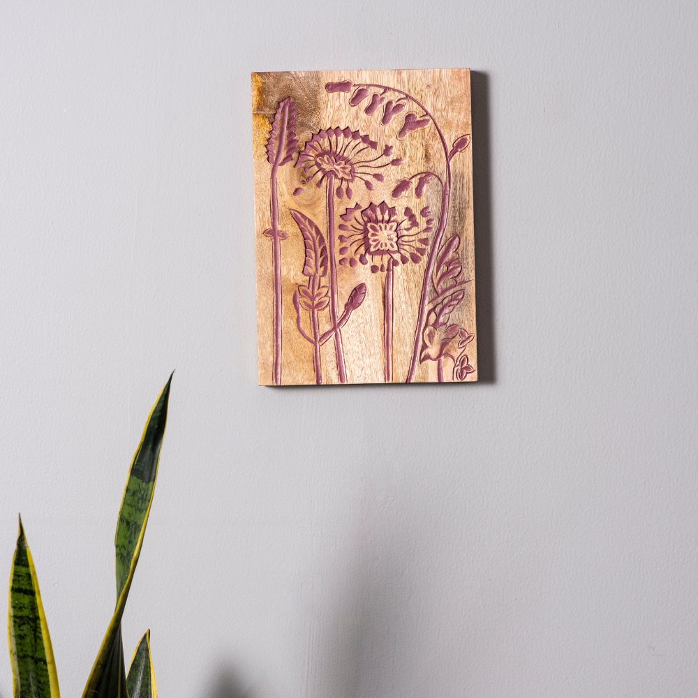 Add an earthy charm to your interiors with this muted pink wooden wall plate featuring hand-carved rustic leaf and floral motifs. The natural wood grain paired with muted pink detailing makes it a timeless piece of wall art. Packed & quality-checked by Indianshelf.