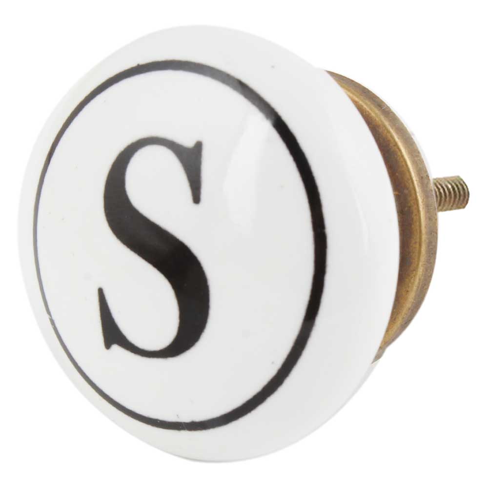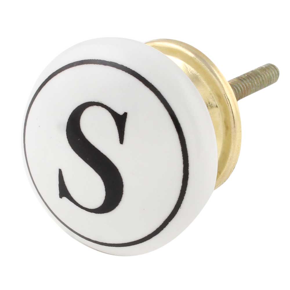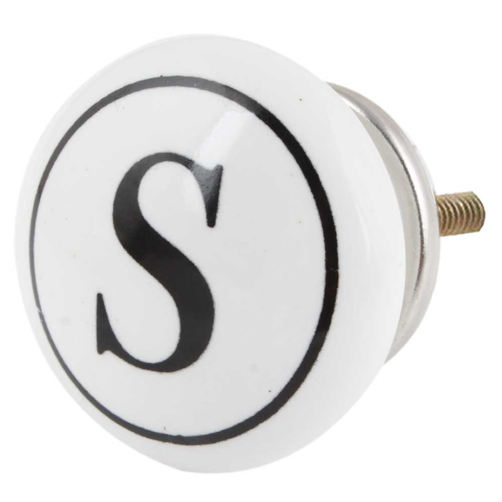 The combination of the sharp black and crisp white tones, along with the prominent engraving of the letter “S,” makes this knob an eye-catching detail for your furniture. Whether you are personalizing a space or adding an elegant initial to a room, this knob is sure to make a statement.