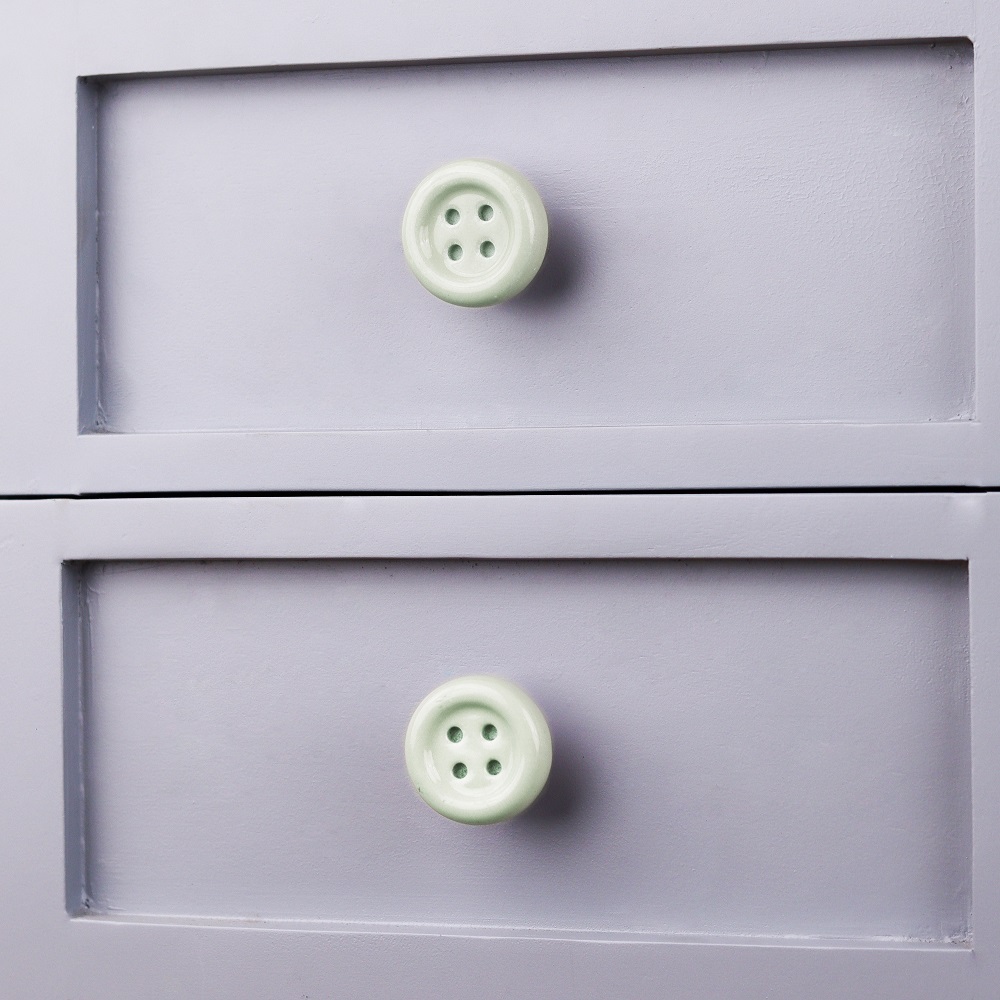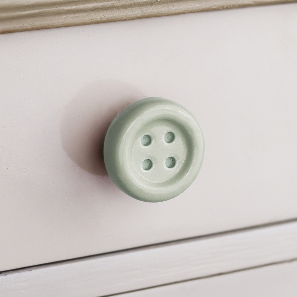 Enhance your home decor with the Sage Green Ceramic Button Knob. Its timeless design and earthy color make it a versatile and elegant choice, offering a refined, calming touch to your furniture and creating a peaceful atmosphere in any room.